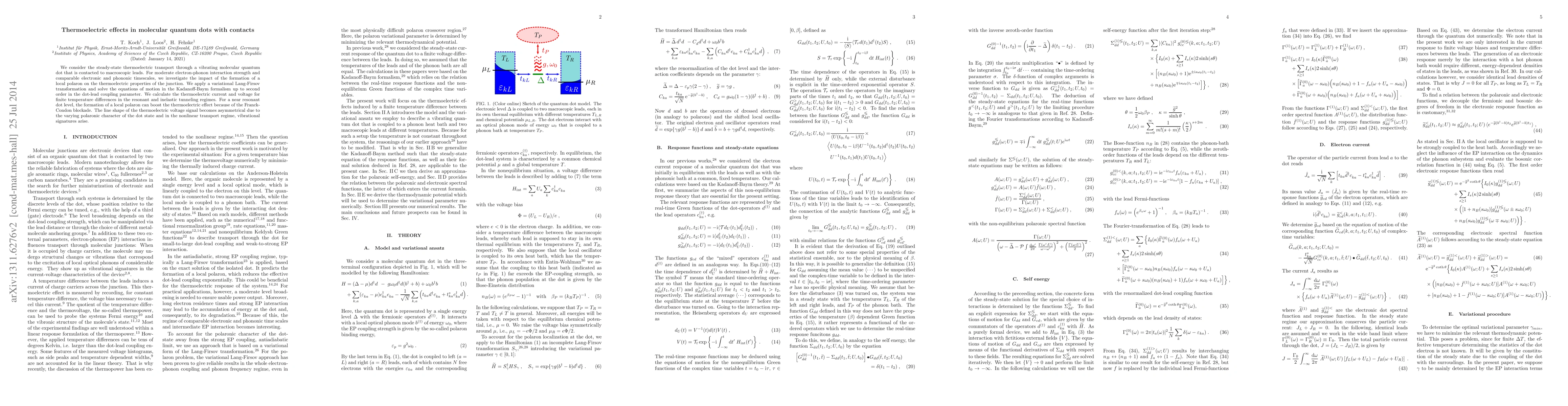 This paper investigates thermoelectric transport in molecular quantum dots with electron-phonon interactions, finding that the formation of a local polaron can enhance thermoelectric effects due to the Franck-Condon blockade, leading to asymmetrical thermoelectric voltage signals and vibrational signatures in nonlinear transport.