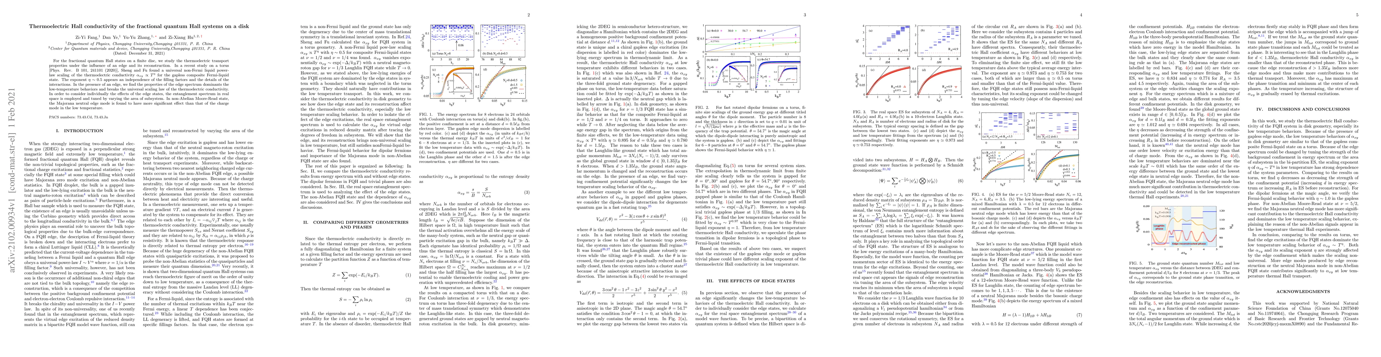 This paper investigates thermoelectric transport in fractional quantum Hall systems on a disk, focusing on how the edge and its reconstruction influence thermoelectric properties. It reveals that edge spectrum dominates low-temperature behavior and disrupts the universal scaling law, with the non-Abelian Moore-Read state showing significant effects from Majorana neutral edge modes.