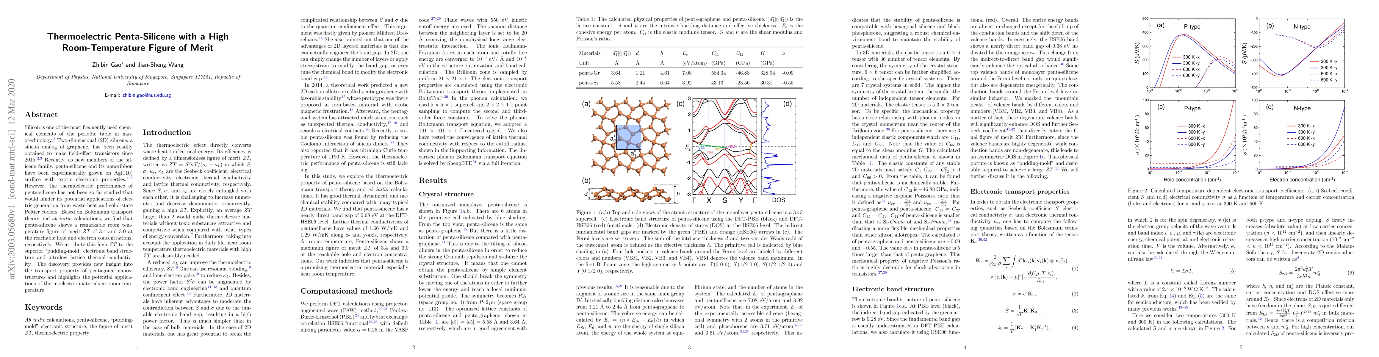 This study reveals that penta-silicene exhibits an exceptional room-temperature thermoelectric figure of merit (ZT) of 3.4 and 3.0 for hole and electron concentrations, respectively, due to its unique electronic band structure and low lattice thermal conductivity, suggesting promising applications for waste heat recovery and thermoelectric cooling.