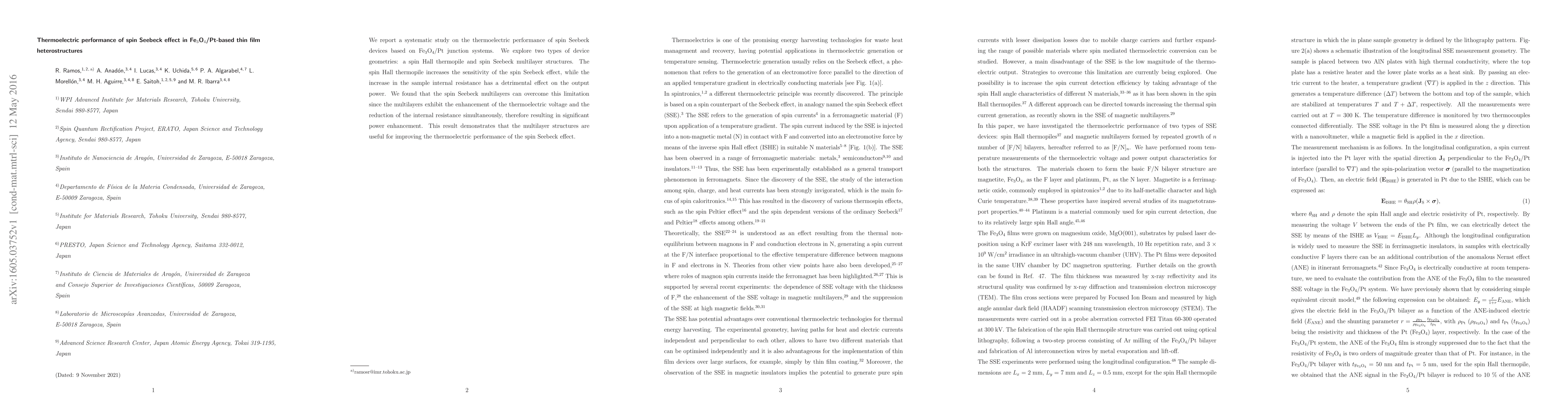 This study investigates the thermoelectric performance of spin Seebeck devices in Fe3O4/Pt heterostructures, finding that spin Hall thermopiles boost sensitivity but increase internal resistance, while spin Seebeck multilayers enhance both thermoelectric voltage and power output by reducing internal resistance.