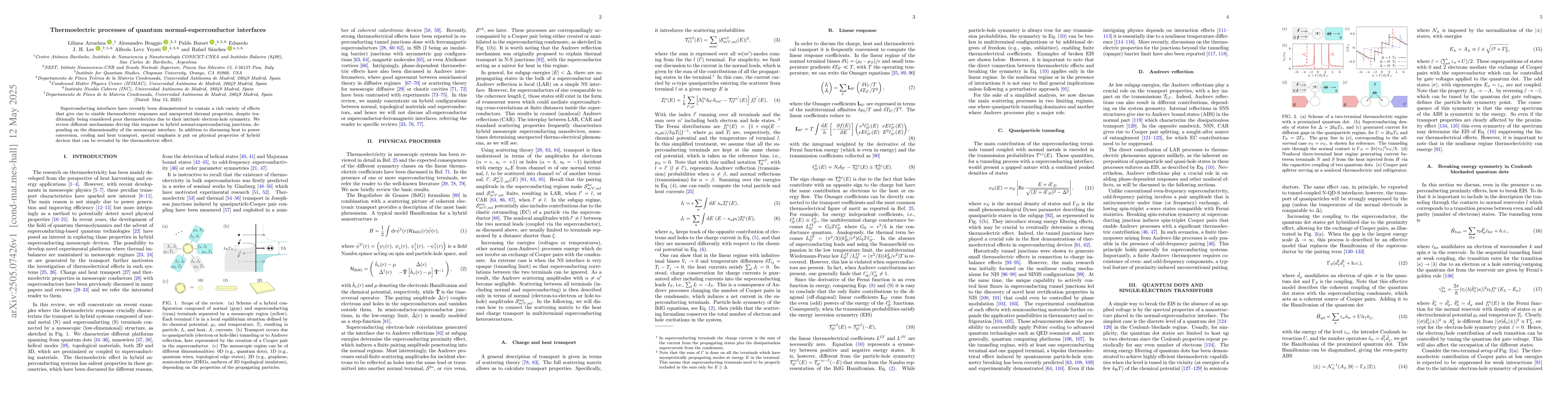 The paper reviews different mechanisms driving thermoelectric responses in hybrid normal-superconductor junctions, focusing on dimensionality effects in mesoscopic interfaces.