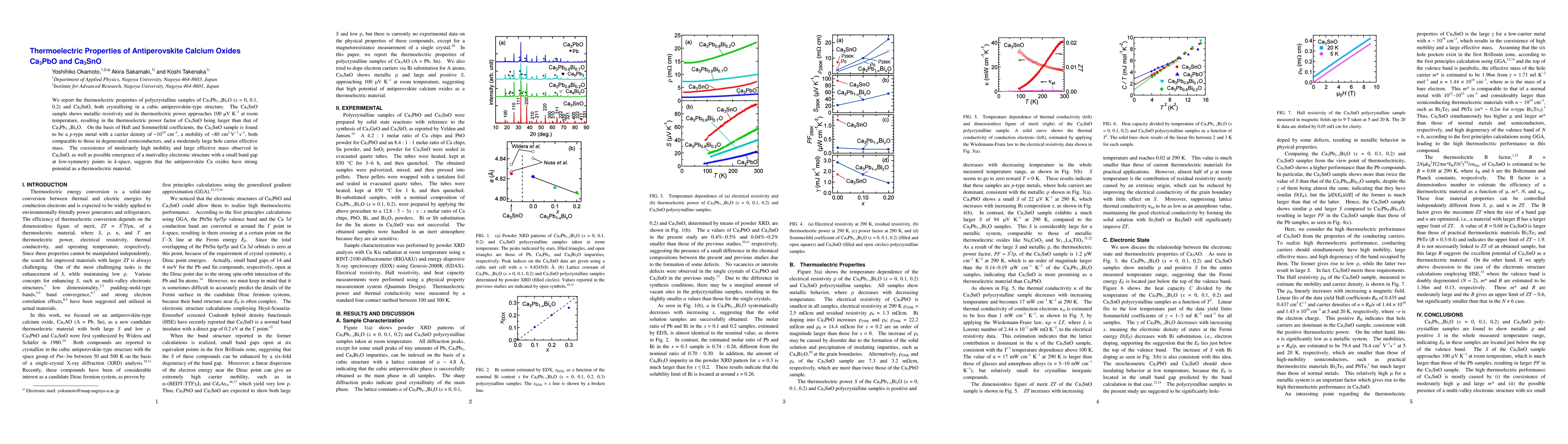 This study investigates the thermoelectric properties of Ca3Pb1-xBixO and Ca3SnO antiperovskite compounds, finding that Ca3SnO exhibits metallic behavior with a high thermoelectric power factor and p-type characteristics, indicating strong potential as a thermoelectric material. The coexistence of high mobility and large effective mass in Ca3SnO suggests promising thermoelectric performance.