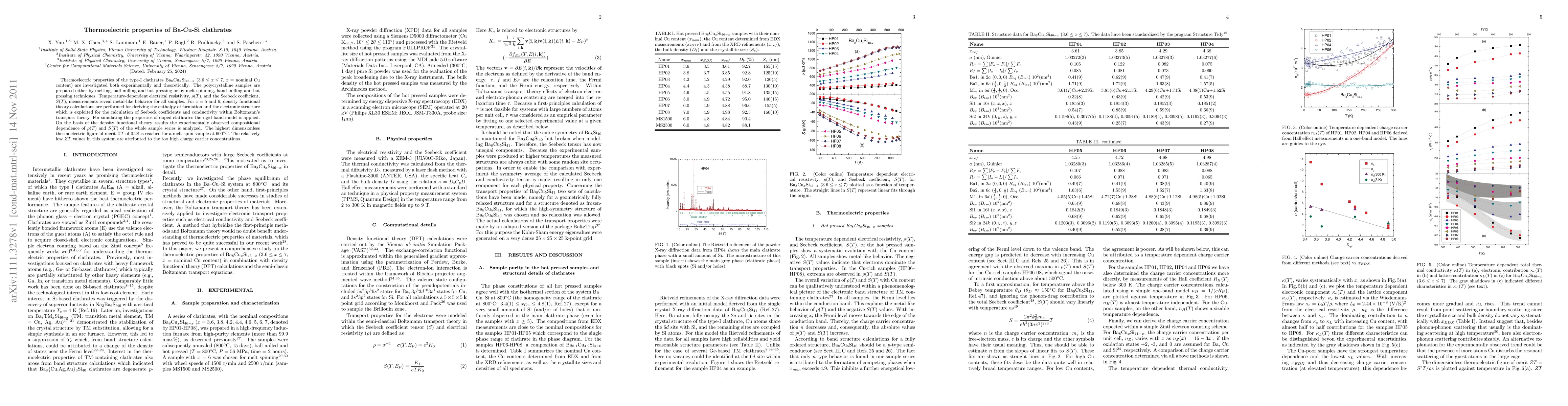 This study investigates the thermoelectric properties of Ba-Cu-Si clathrates, finding metal-like behavior and a highest $ZT$ value of 0.28 for a melt-spun sample at $600^{\circ}$C. The low $ZT$ values are attributed to high charge carrier concentrations.