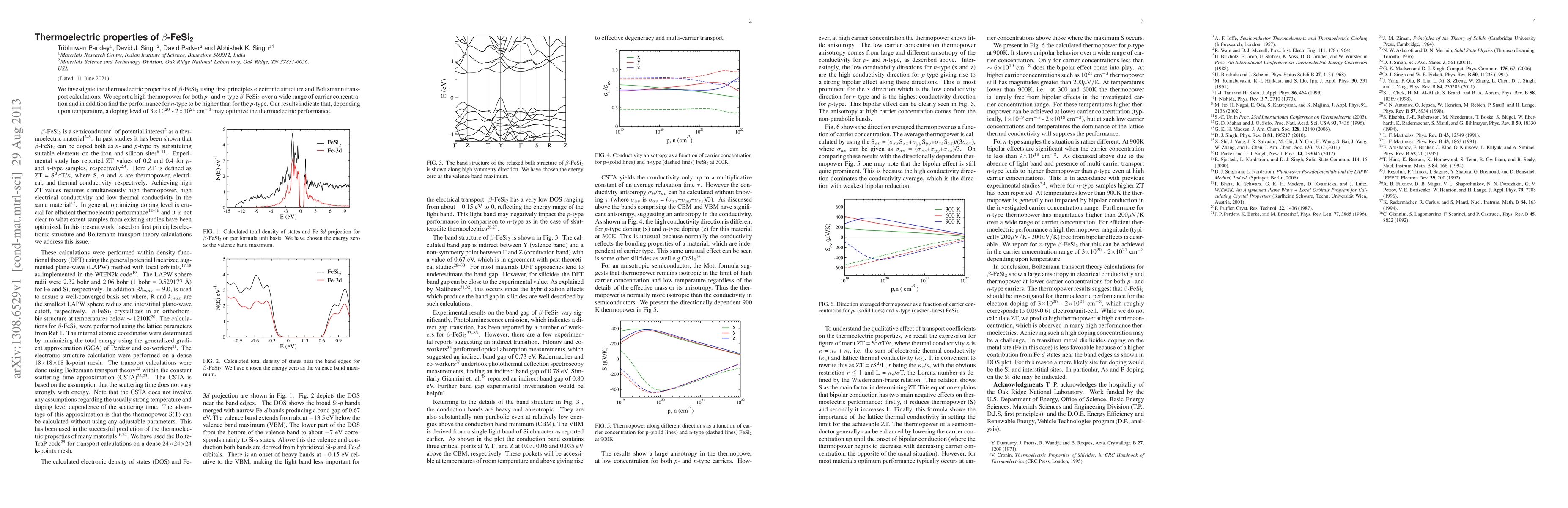 We investigate the thermoelectric properties of ${\beta}$-FeSi$_{\text2}$ using first principles electronic structure and Boltzmann transport calculations. We report a high thermopower for both \textit{p}- and \textit{n}-type ${\beta}$-FeSi$_{\text2}$ over a wide range of carrier concentration and in addition find the performance for \textit{n}-type to be higher than for the \textit{p}-type. Our results indicate that, depending upon temperature, a doping level of 3$\times10{^{20}}$ - 2$\times10{^{21}}$ cm${^{-3}}$ may optimize the thermoelectric performance.