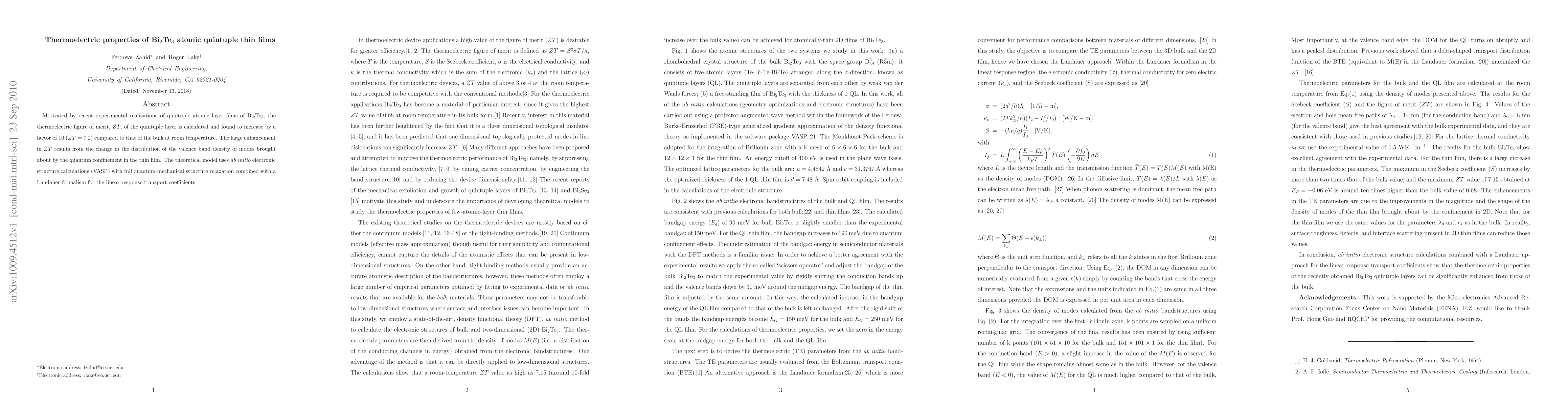 Researchers found that a new type of thin film made from Bi2Te3 increases its thermoelectric efficiency by 10 times compared to the bulk material at room temperature. This is due to quantum confinement in the thin film, which changes how energy is distributed within the material.