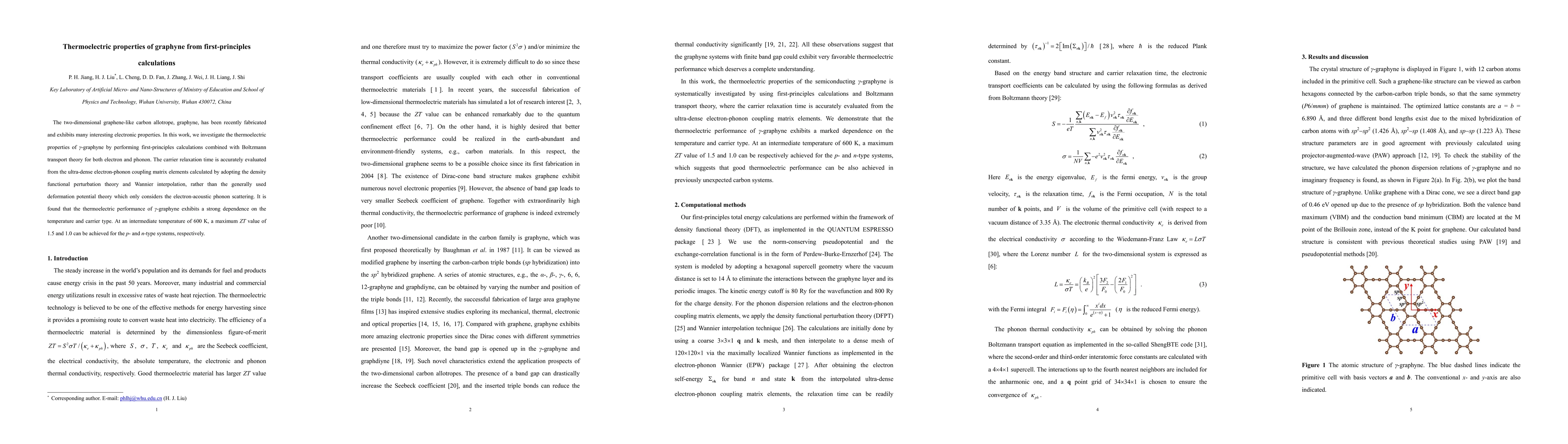 This study investigates the thermoelectric properties of γ-graphyne using first-principles calculations and Boltzmann transport theory, finding a maximum ZT value of 1.5 for p-type and 1.0 for n-type systems at 600 K, with performance strongly dependent on temperature and carrier type.