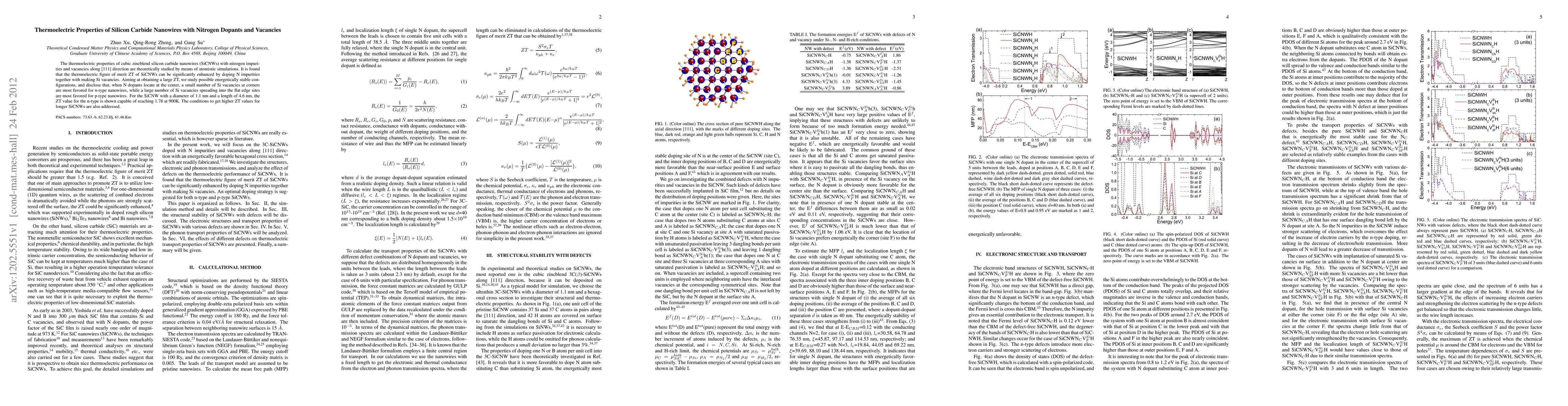 This study theoretically investigates the thermoelectric properties of silicon carbide nanowires doped with nitrogen and containing silicon vacancies. The research finds that optimal configurations, such as N dopants at the center and Si vacancies at corners or edges, can significantly enhance the thermoelectric figure of merit ZT, reaching up to 1.78 for n-type nanowires at 900K.