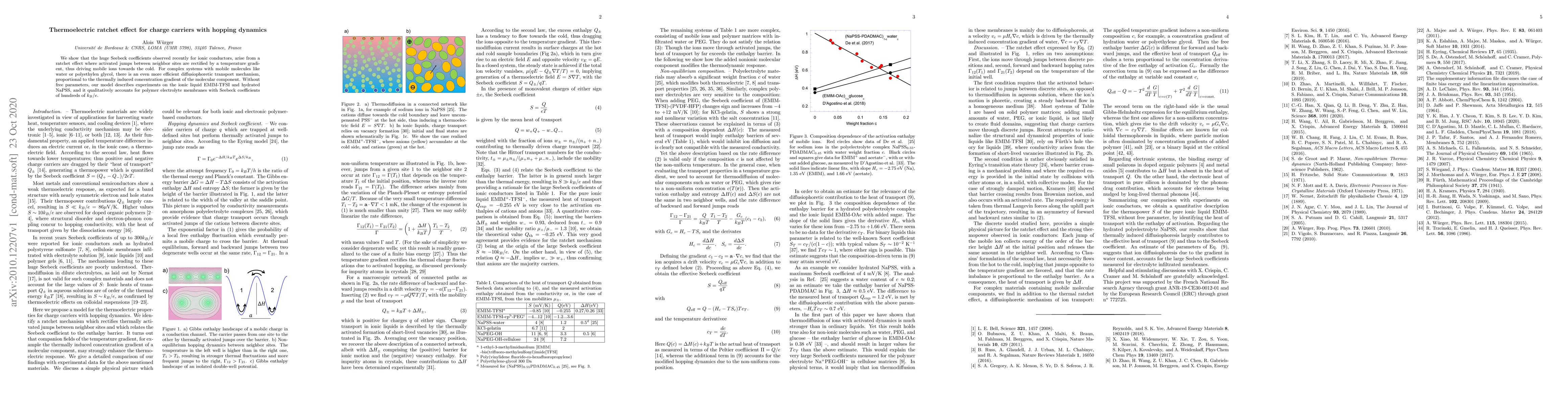 We show that the huge Seebeck coefficients observed recently for ionic conductors, arise from a ratchet effect where activated jumps between neighbor sites are rectified by a temperature gradient, thus driving mobile ions towards the cold. For complex systems with mobile molecules like water or polyethylene glycol, there is an even more efficient diffusiophoretic transport mechanism, proportional to the thermally induced concentration gradient of the molecular component. Without free parameters, our model describes experiments on the ionic liquid EMIM-TFSI and hydratedNaPSS, and it qualitatively accounts for polymer electrolyte membranes with Seebeck coefficients of hundreds of $k_B/e$.