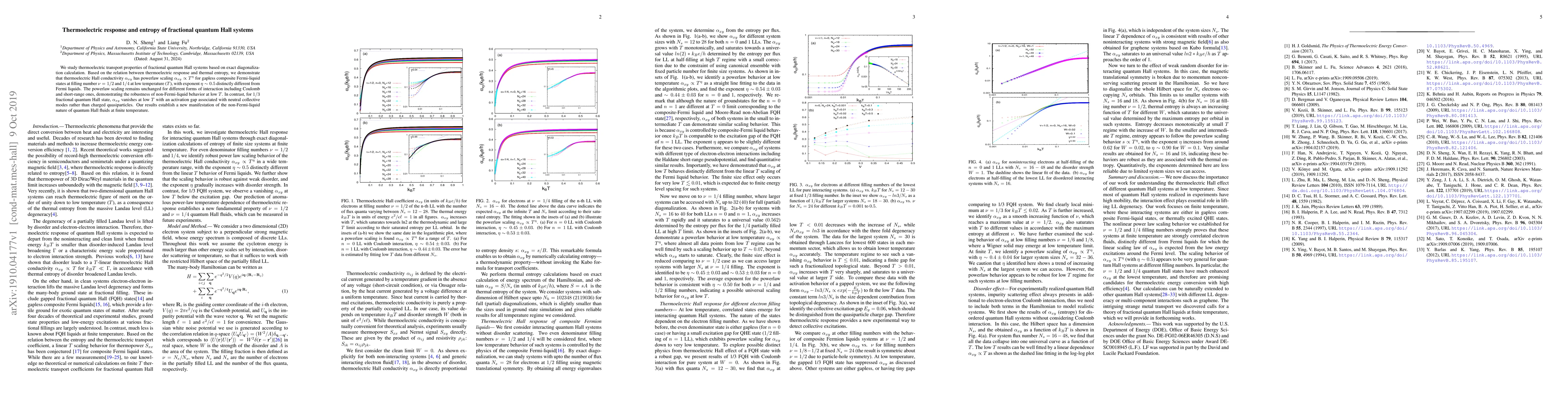 We study thermoelectric transport properties of fractional quantum Hall systems based on exact diagonalization calculation. Based on the relation between thermoelectric response and thermal entropy, we demonstrate that thermoelectric Hall conductivity $\alpha_{xy}$ has powerlaw scaling $\alpha_{xy} \propto T^{\eta}$ for gapless composite Fermi-liquid states at filling number $\nu=1/2$ and $1/4$ at low temperature ($T$), with exponent $\eta \sim 0.5$ distinctly different from Fermi liquids. The powerlaw scaling remains unchanged for different forms of interaction including Coulomb and short-range ones, demonstrating the robustness of non-Fermi-liquid behavior at low $T$. In contrast, for $1/3$ fractional quantum Hall state, $\alpha_{xy}$ vanishes at low $T$ with an activation gap associated with neutral collective modes rather than charged quasiparticles. Our results establish a new manifestation of the non-Fermi-liquid nature of quantum Hall fluids at finite temperature.