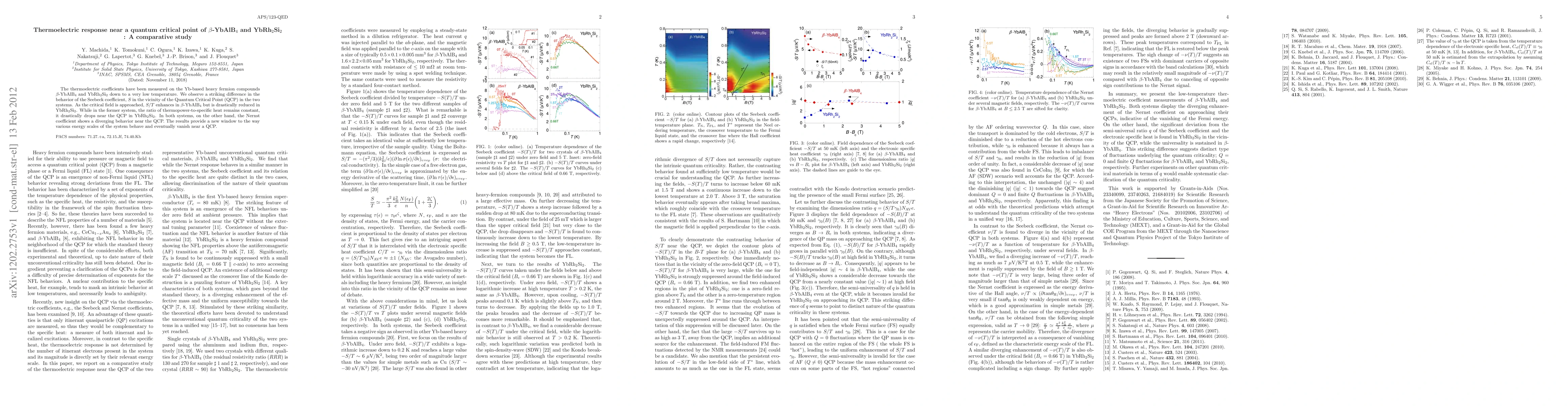 This study compares the thermoelectric responses of Yb-based heavy fermion compounds beta-YbAlB4 and YbRh2Si2 near their Quantum Critical Points, revealing contrasting behaviors of the Seebeck coefficient and thermopower-to-specific heat ratio. Both materials show diverging Nernst coefficients near the QCP, offering insights into the energy scales' behavior in these systems.