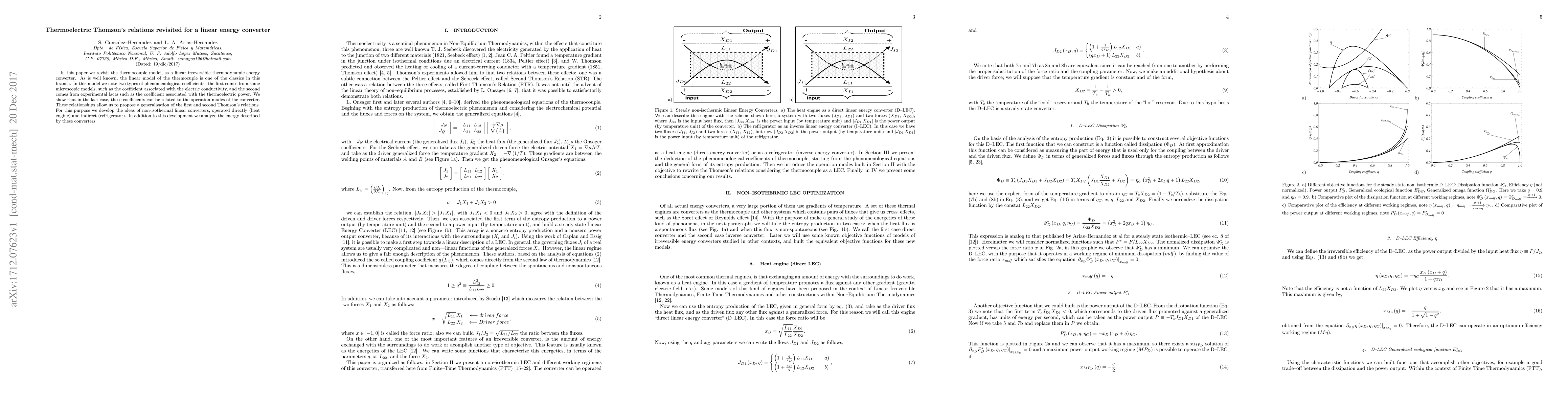 Researchers revisit Thermocouple Thomson's relations to develop a generalization for linear energy converters, exploring relationships between operation modes and thermoelectric power coefficients.