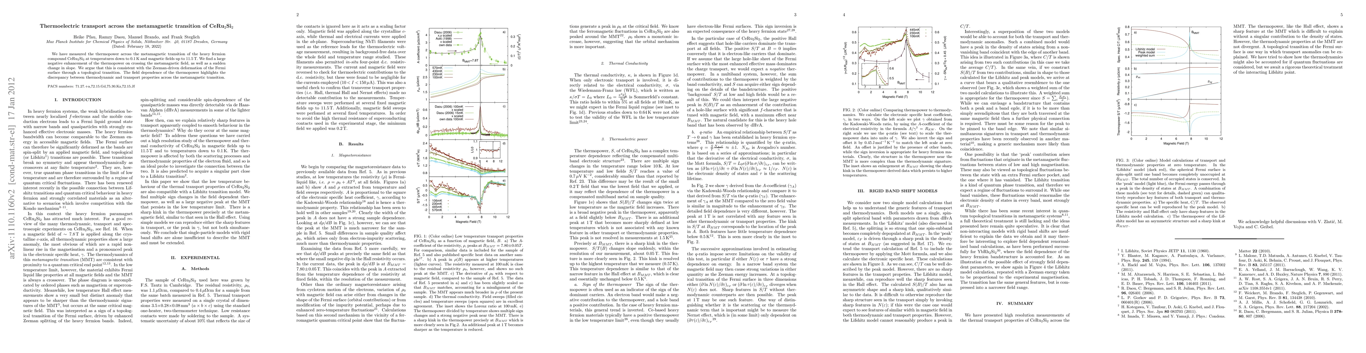 This study investigates the thermoelectric transport in CeRu2Si2 during its metamagnetic transition, revealing a significant negative enhancement in thermopower and a change in slope, suggesting a topological Fermi surface deformation. The findings underscore the divergence between thermodynamic and transport properties in the transition.