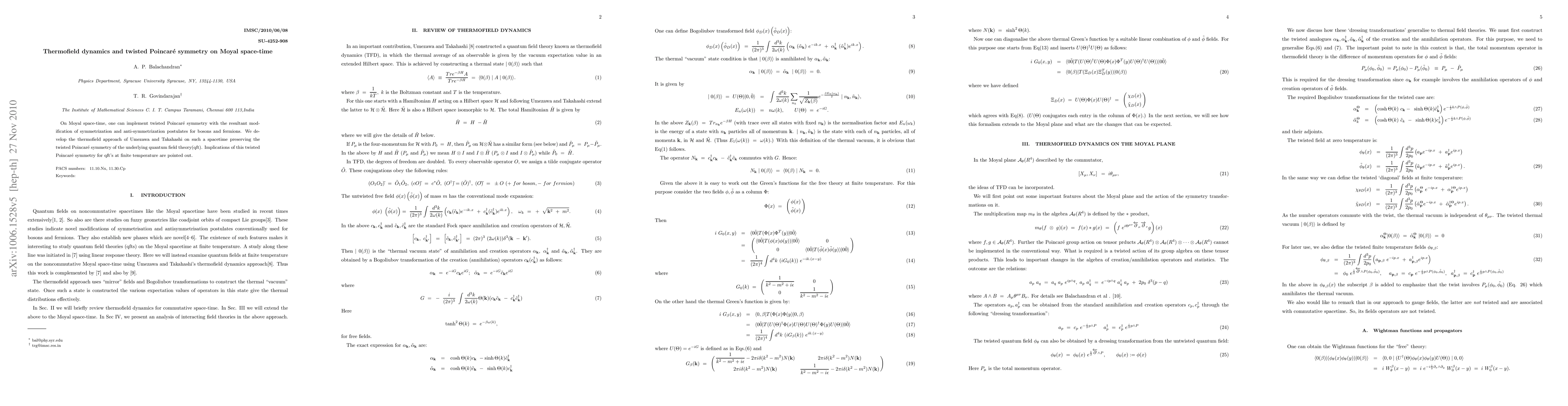 The paper presents a detailed formulation of thermofield dynamics on Moyal space-time with twisted Poincaré symmetry, extending previous work by Umezawa and Takahashi.