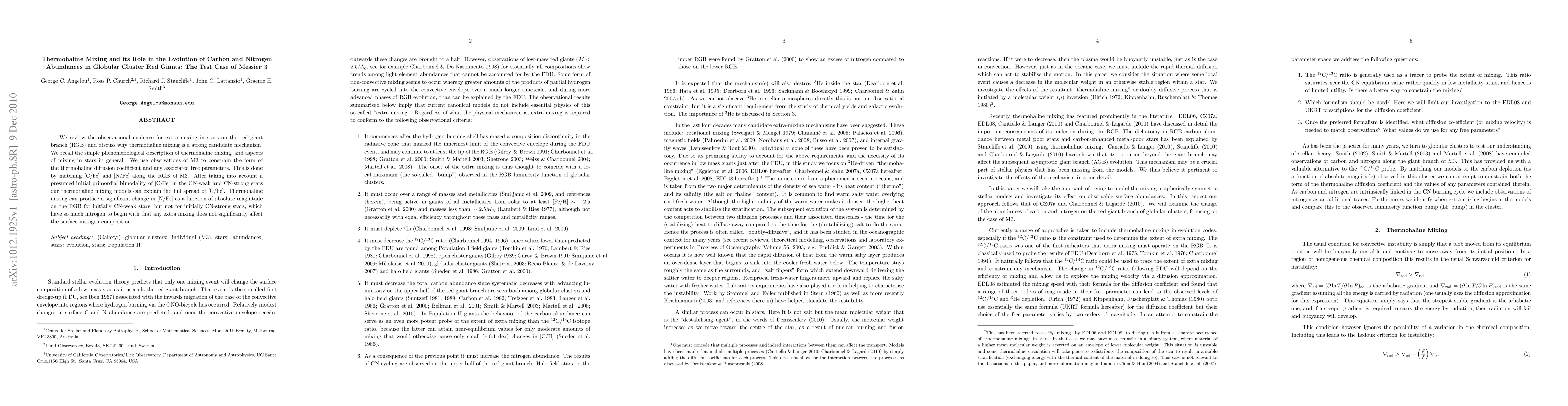 We review the observational evidence for extra mixing in stars on the red giant branch (RGB) and discuss why thermohaline mixing is a strong candidate mechanism. We recall the simple phenomenological description of thermohaline mixing, and aspects of mixing in stars in general. We use observations of M3 to constrain the form of the thermohaline diffusion coefficient and any associated free parameters. This is done by matching [C/Fe] and [N/Fe] along the RGB of M3. After taking into account a presumed initial primordial bimodality of [C/Fe] in the CN-weak and CN-strong stars our thermohaline mixing models can explain the full spread of [C/Fe]. Thermohaline mixing can produce a significant change in [N/Fe] as a function of absolute magnitude on the RGB for initially CN-weak stars, but not for initially CN-strong stars, which have so much nitrogen to begin with that any extra mixing does not significantly affect the surface nitrogen composition.