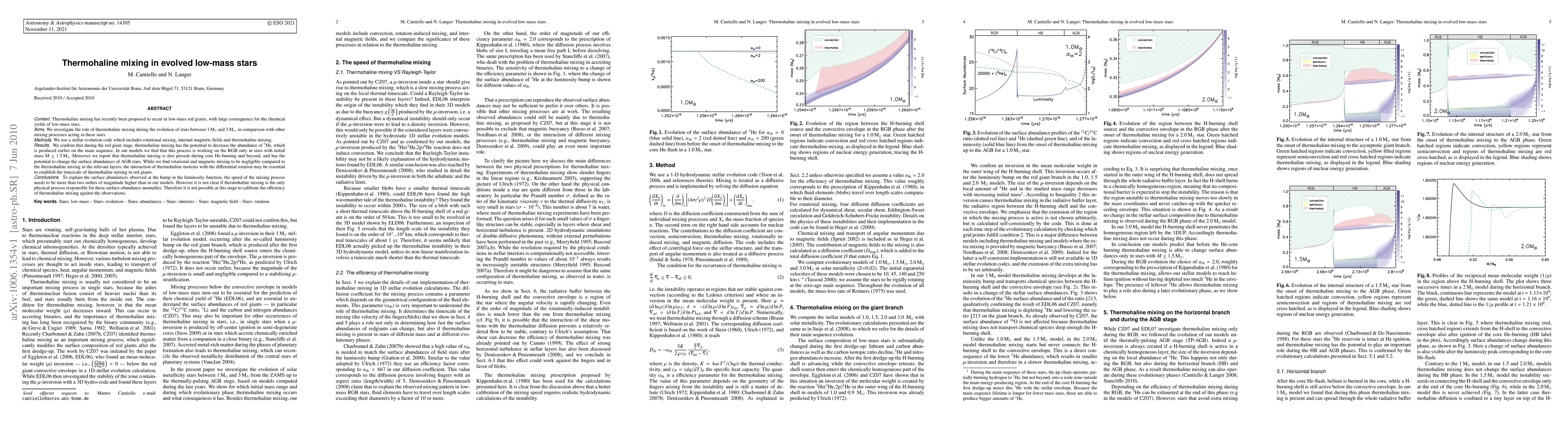 This paper investigates thermohaline mixing in low-mass red giants, finding it decreases ^3He abundance in stars with initial mass ≤1.5Msun. It also shows that this mixing continues during core helium burning and affects AGB stars, though rotational and magnetic mixing are negligible compared to thermohaline mixing.