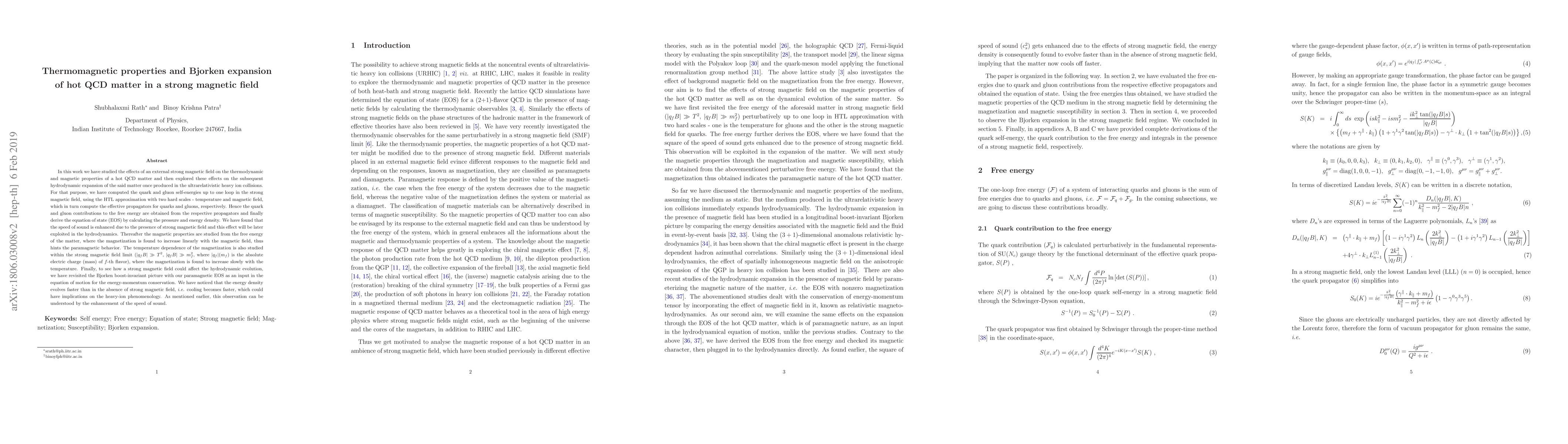 This paper explores the thermodynamic and magnetic properties of hot QCD matter under strong magnetic fields, finding enhanced speed of sound and linear increase in magnetization. It uses the Bjorken expansion to show that the presence of a strong magnetic field accelerates cooling in heavy-ion collisions.