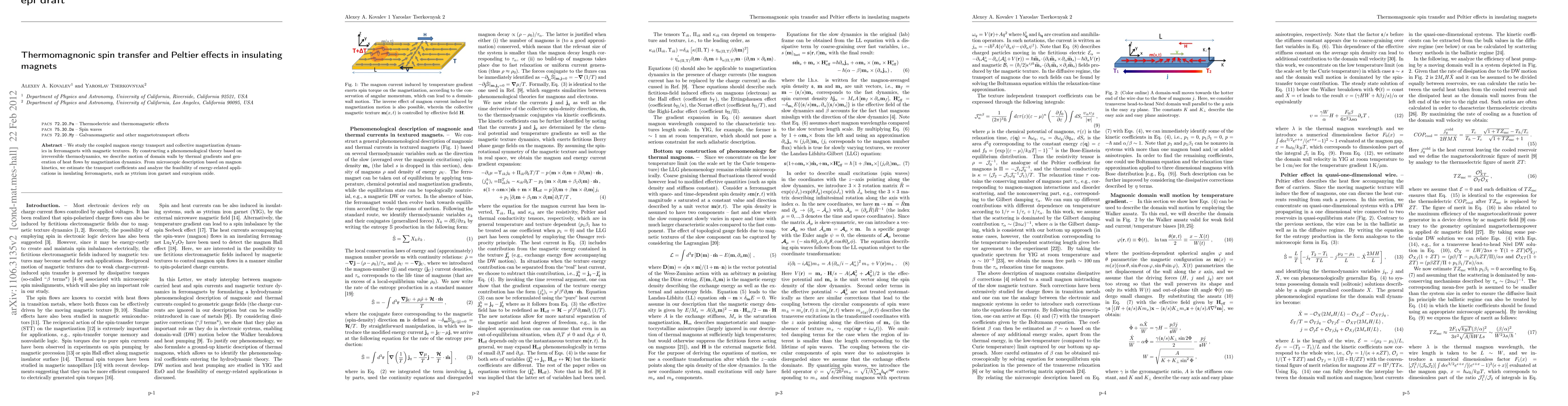 This research develops a theory linking thermal gradients to domain wall motion in insulating ferromagnets, estimating transport coefficients via magnon kinetics. It explores energy-related applications in materials like yttrium iron garnet and europium oxide.
