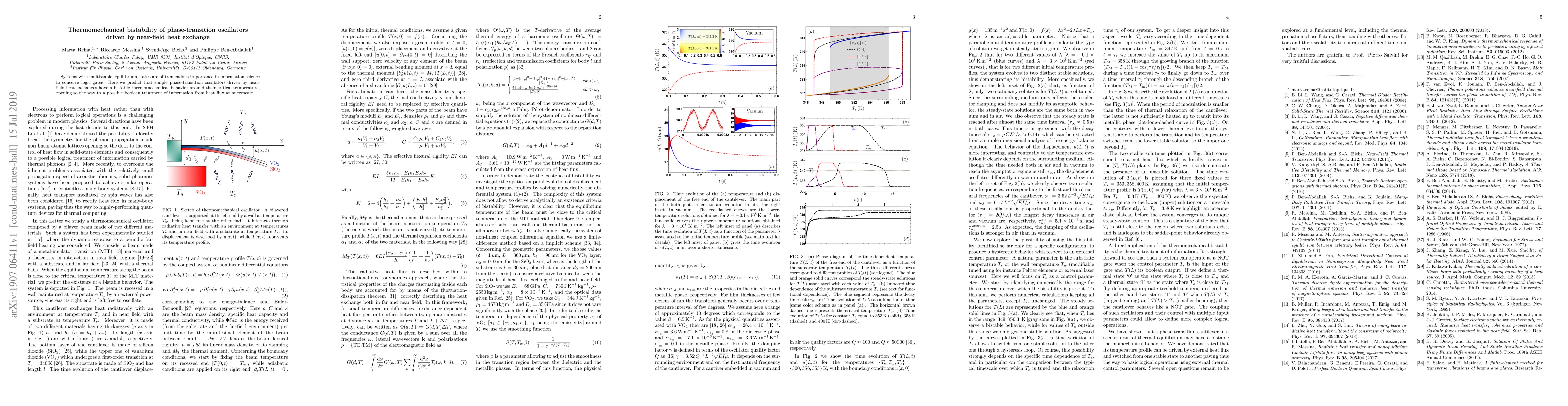 Researchers predict that phase-transition oscillators driven by near-field heat exchanges exhibit bistable thermomechanical behavior around their critical temperature, enabling a possible boolean treatment of information from heat flux at the microscale.