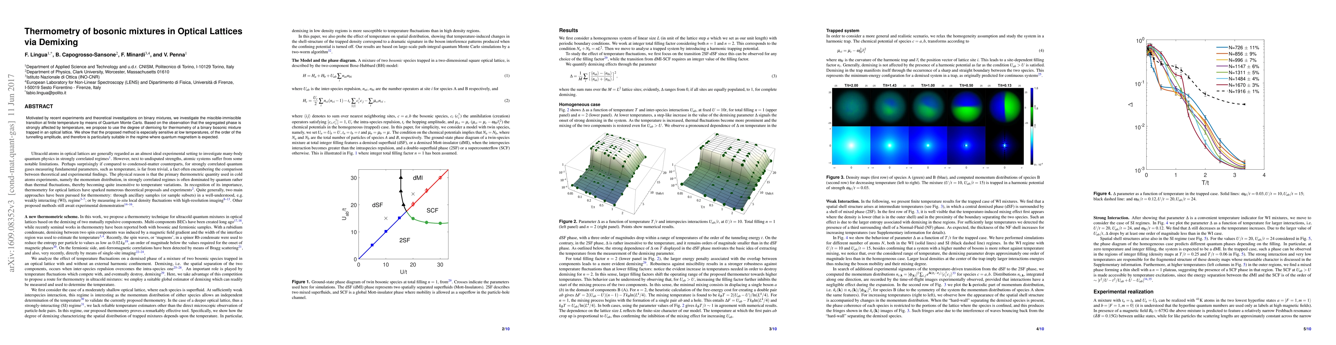 This paper proposes a novel thermometry method for bosonic mixtures in optical lattices using the degree of demixing observed via Quantum Monte Carlo simulations. The method is particularly effective at low temperatures, making it suitable for studying quantum magnetism.