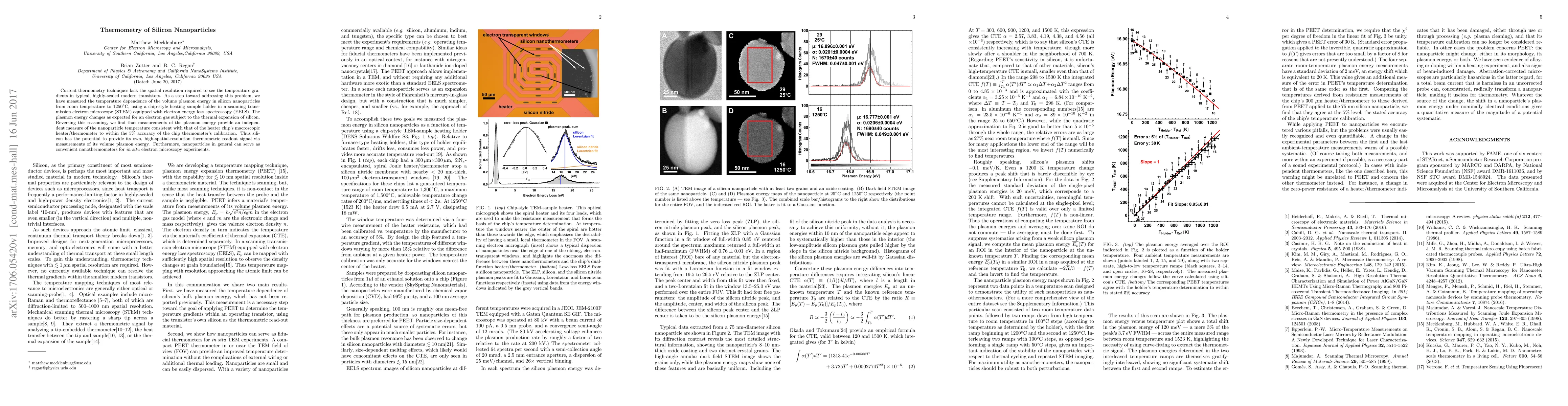 Researchers developed a method to measure temperature using silicon nanoparticles in electron microscopes, providing high spatial resolution thermometry with 5% accuracy. This innovation could enable in situ nanoscale temperature measurements in various scientific experiments.