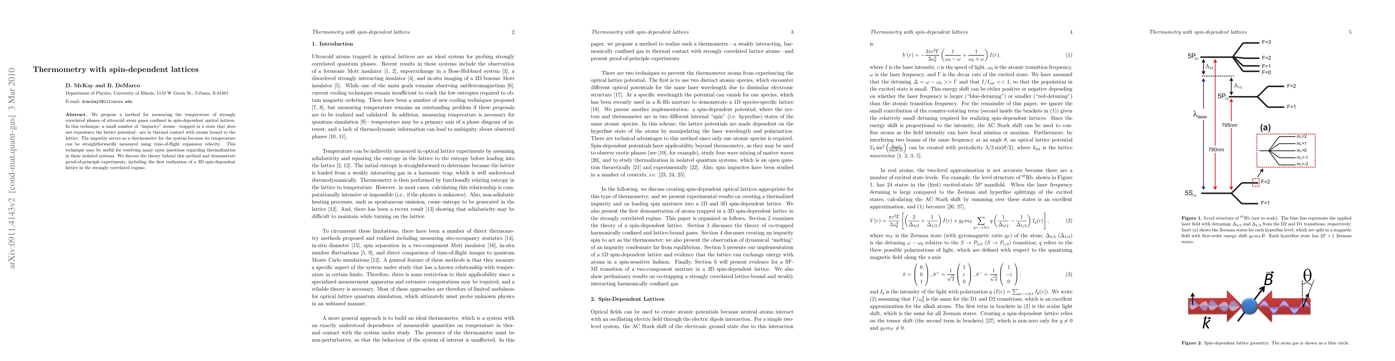 This paper proposes a novel thermometry method for strongly correlated phases of ultracold atom gases using "impurity" atoms in spin-dependent optical lattices, measuring their temperature via time-of-flight expansion velocity. The technique demonstrates proof-of-principle experiments, including the first 3D spin-dependent lattice in the strongly correlated regime.