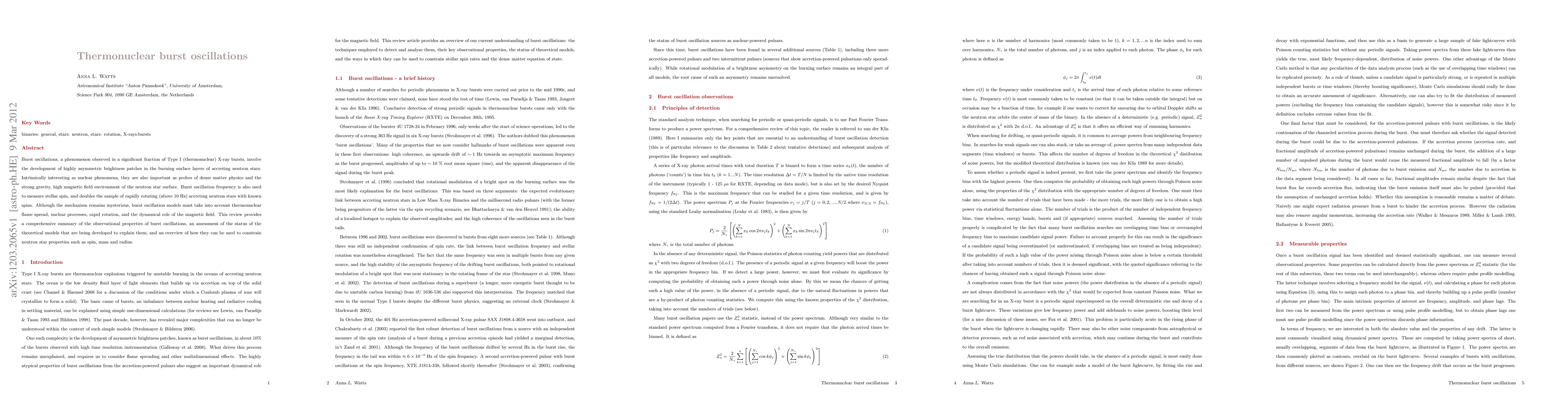 This paper reviews the phenomenon of burst oscillations in Type I X-ray bursts, highlighting their importance for probing neutron star properties and dense matter physics. It assesses current theoretical models and their ability to explain these oscillations, which are influenced by thermonuclear processes, rapid rotation, and magnetic fields.