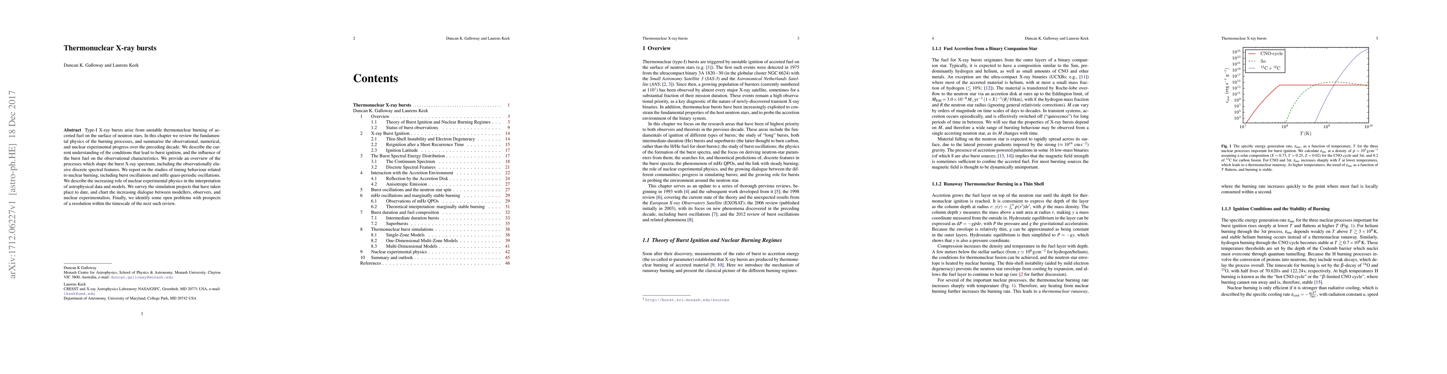 This paper reviews the fundamental physics of thermonuclear X-ray bursts from neutron stars, summarizing recent advances in observational, numerical, and nuclear experimental progress. It highlights the current understanding of burst ignition conditions and the influence of burst fuel on observational characteristics, and identifies open problems with potential resolutions in the near future.