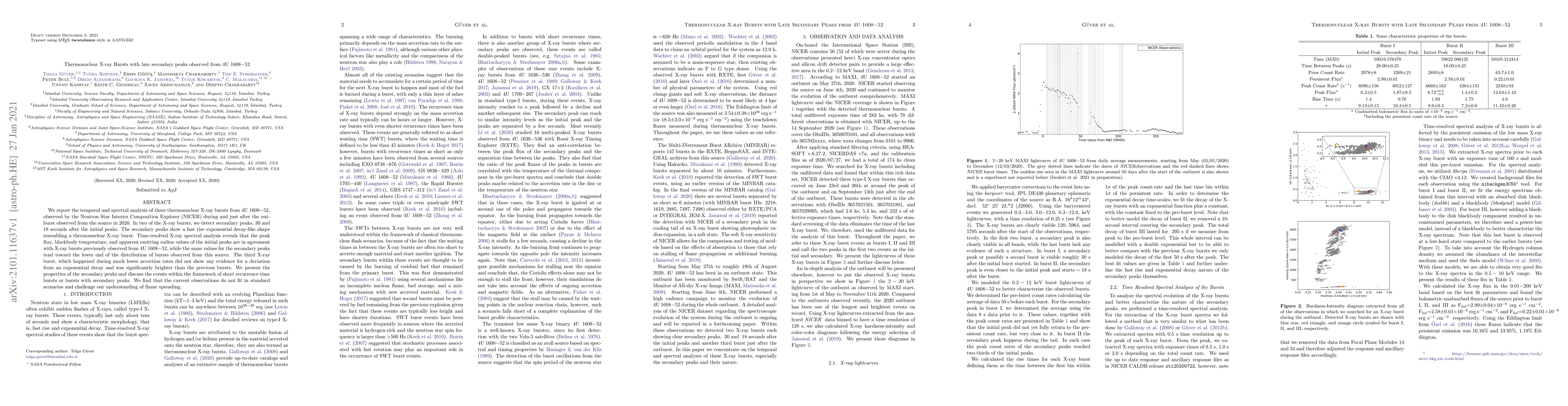 This study analyzes three thermonuclear X-ray bursts from 4U 1608-52, revealing secondary peaks in two bursts that challenge current models of flame spreading. The third burst showed no secondary peak and was significantly brighter, indicating variations in burst behavior linked to accretion rates.