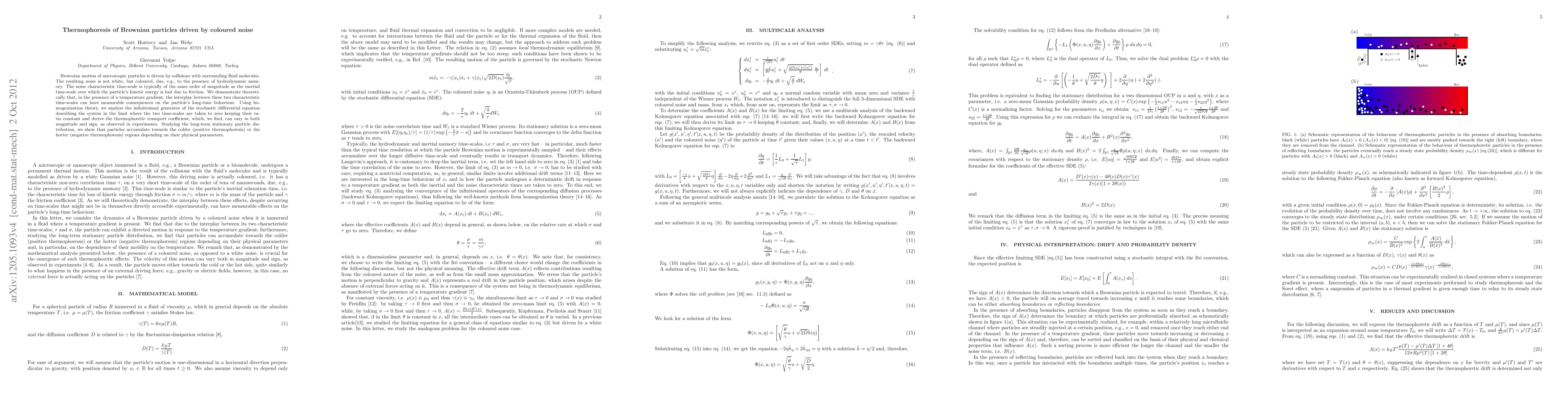 The Brownian motion of microscopic particles is driven by the collisions with the molecules of the surrounding fluid. The noise associated with these collisions is not white, but coloured due, e.g., to the presence of hydrodynamic memory. The noise characteristic time scale is typically of the same order as the time over which the particle's kinetic energy is lost due to friction (inertial time scale). We demonstrate theoretically that, in the presence of a temperature gradient, the interplay between these two characteristic time scales can have measurable consequences on the particle long-time behaviour. Using homogenization theory, we analyse the infinitesimal generator of the stochastic differential equation describing the system in the limit where the two characteristic times are taken to zero; from this generator, we derive the thermophoretic transport coefficient, which, we find, can vary in both magnitude and sign, as observed in experiments. Furthermore, studying the long-term stationary particle distribution, we show that particles can accumulate towards the colder (positive thermophoresis) or the warmer (negative thermophoresis) regions depending on the dependence of their physical parameters and, in particular, their mobility on the temperature.