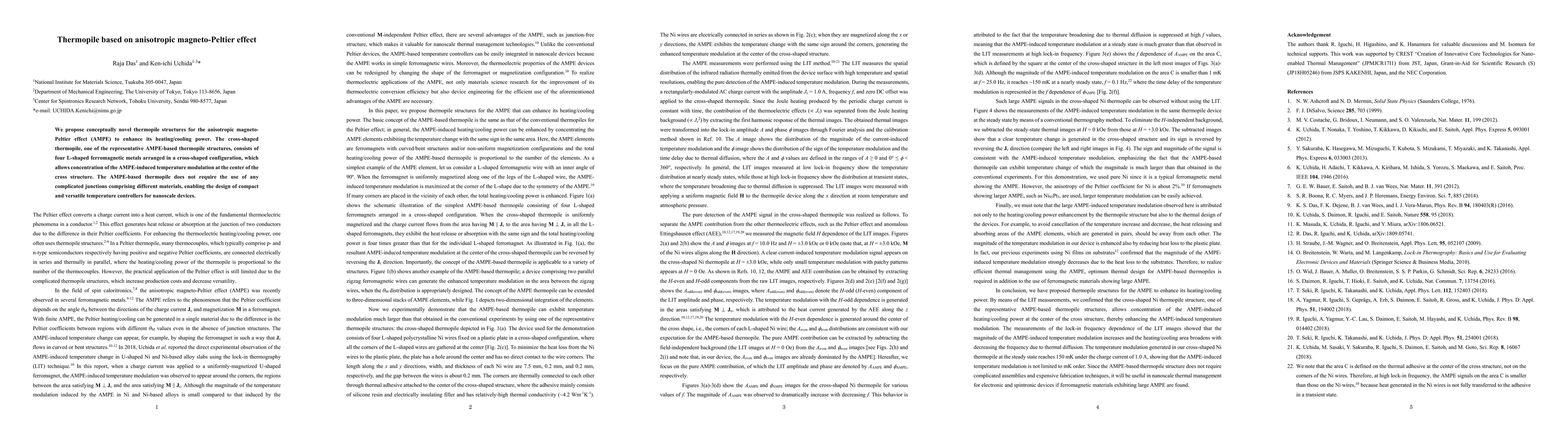 This paper proposes innovative thermopile structures based on the anisotropic magneto-Peltier effect (AMPE) to boost heating/cooling power. The cross-shaped thermopile, utilizing four L-shaped ferromagnetic metals, concentrates AMPE-induced temperature modulation, enabling compact and versatile nanoscale temperature controllers without complex material junctions.