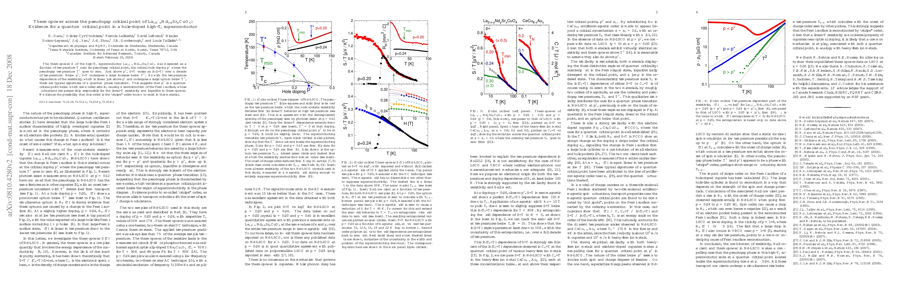 Researchers investigated thermopower in a high-Tc superconductor near its pseudogap critical point, finding a logarithmic temperature dependence just above the critical point and a large increase below it, indicating a quantum phase transition.