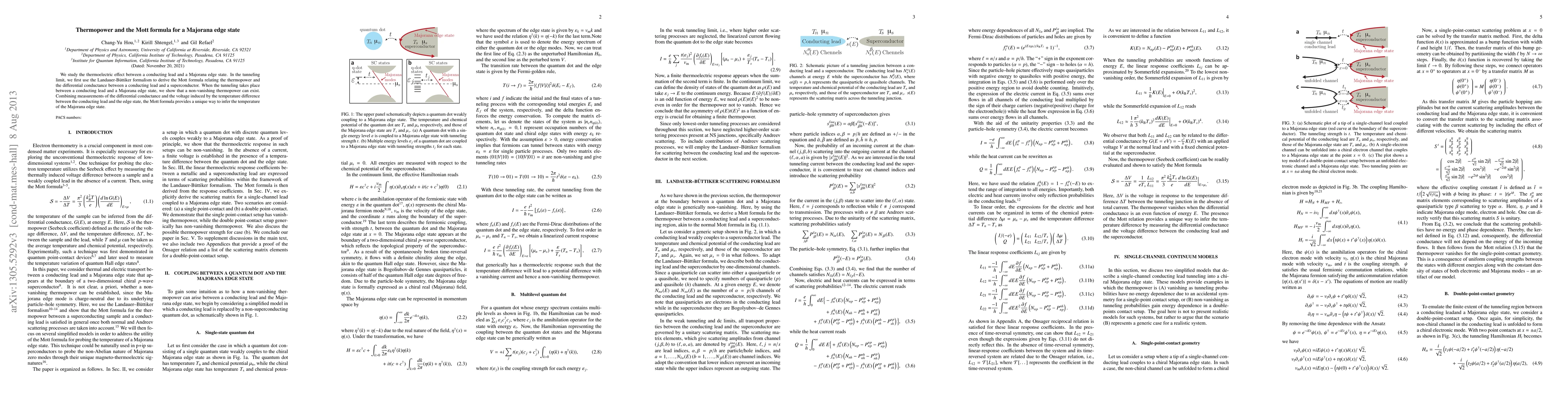 This paper investigates the thermoelectric effect between a conducting lead and a Majorana edge state, deriving the Mott formula in the tunneling limit. It demonstrates that a non-zero thermopower can exist in such interactions, allowing the temperature of the Majorana edge state to be inferred via the Mott formula.