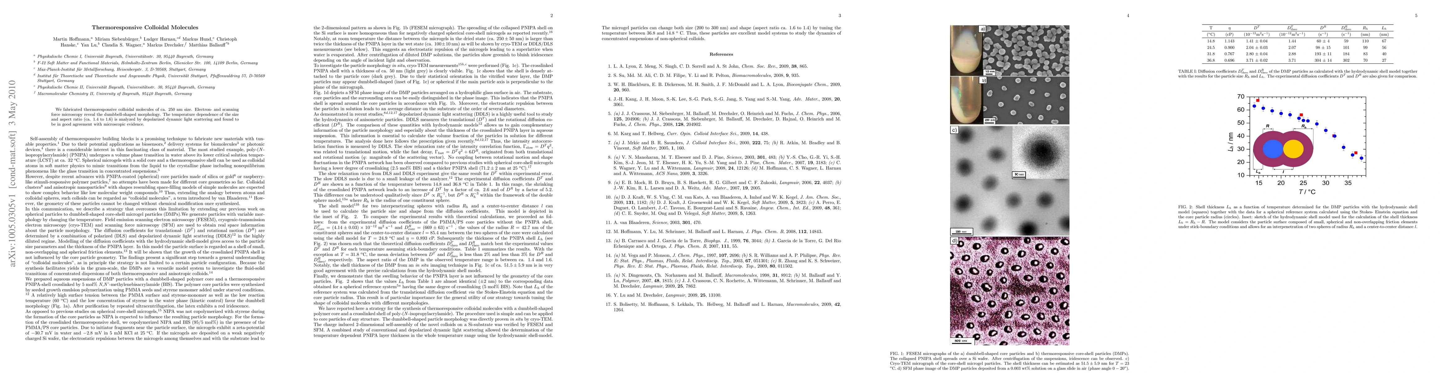 This research demonstrates the synthesis and characterization of thermoresponsive colloidal molecules with a cross-linked PNIPA shell, which has potential applications in fields such as soft matter physics and biomedicine.