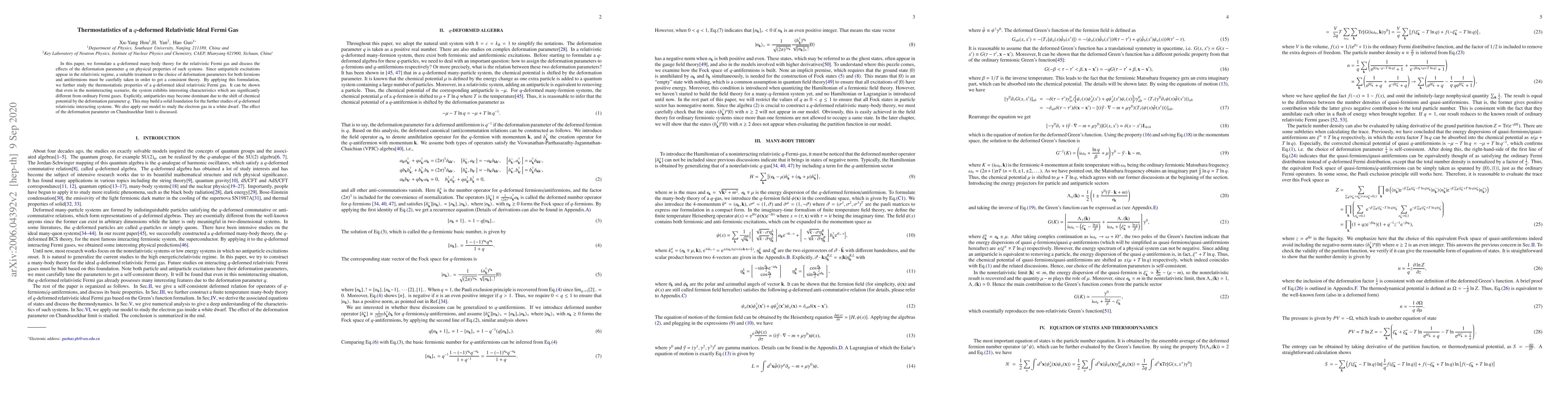 The research formulates a q-deformed many-body theory for relativistic Fermi gases, considering both fermions and antifermions, and examines its thermal properties.