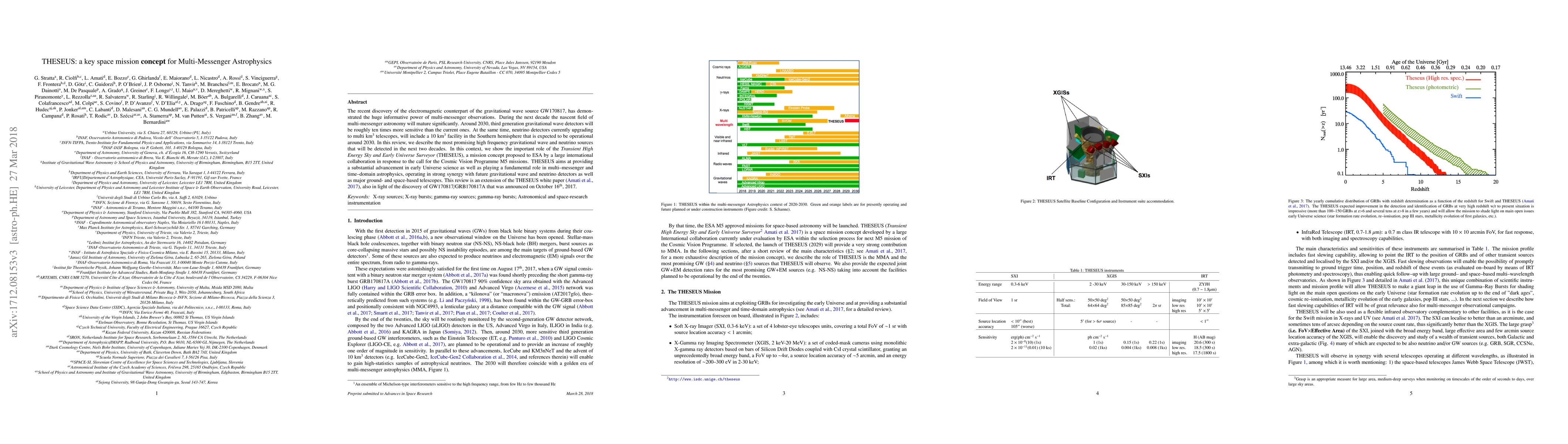 The THESEUS mission concept aims to advance early Universe science and play a key role in multi-messenger and time-domain astrophysics with the help of future gravitational wave, neutrino detectors, and major telescopes by 2030.