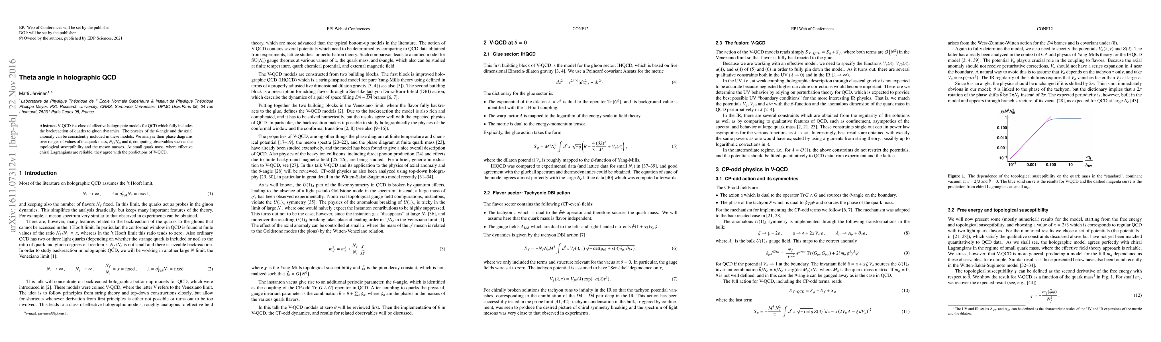 This paper explores effective holographic models for Quantum Chromodynamics (QCD) that incorporate quark backreaction and the theta-angle physics, analyzing their phase diagrams and computing observables like topological susceptibility and meson masses. Results align with predictions from effective chiral Lagrangians at small quark masses.