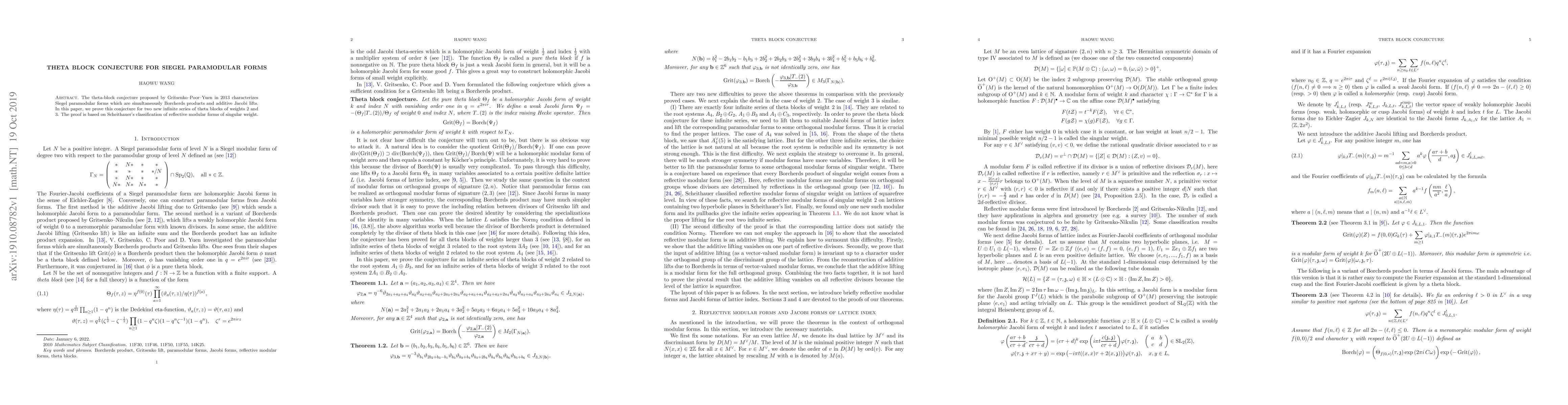 This paper proves the theta-block conjecture for two new infinite series of theta blocks of weights 2 and 3, which characterize Siegel paramodular forms as both Borcherds products and additive Jacobi lifts, using Scheithauer's classification of reflective modular forms of singular weight.