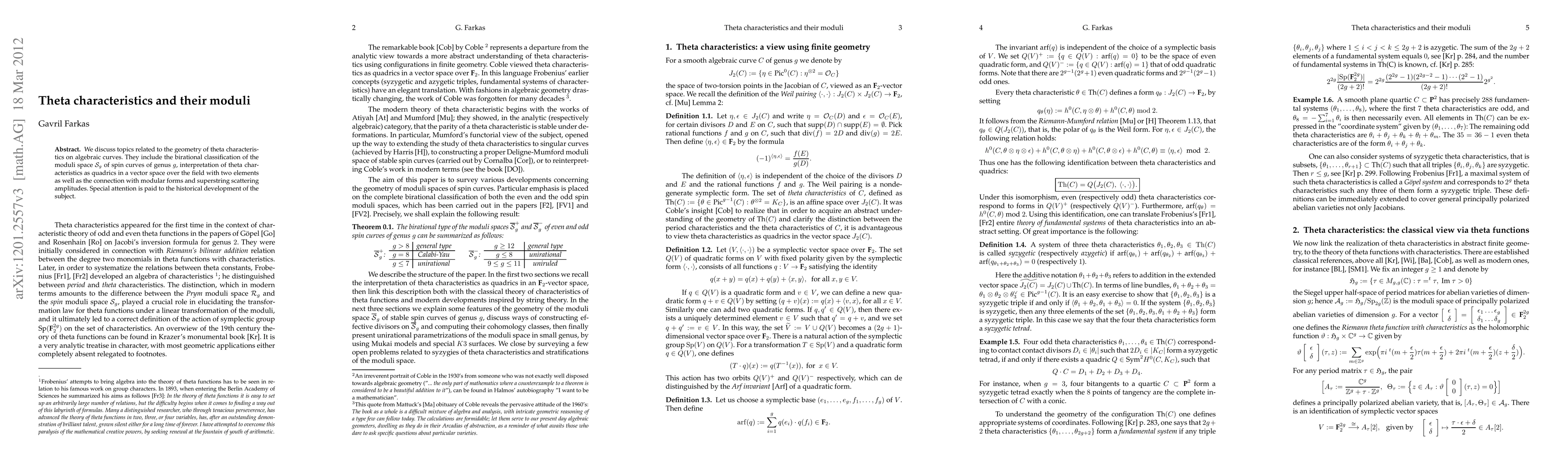 This paper explores the geometry of theta characteristics, focusing on the birational geometry of the spin moduli space of curves, the connection to special K3 surfaces, and their relation to classical theta function theory and string theory. It also provides a historical overview of the development of this field.