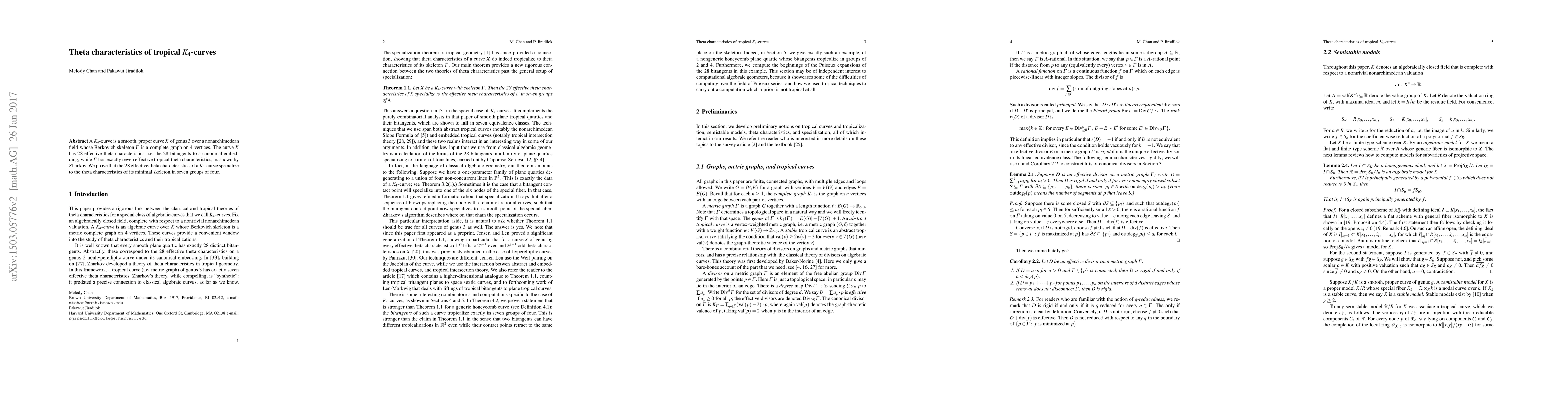 The research employs tropical geometry techniques to analyze the theta characteristics of tropical $K_4$-curves, which are smooth, proper curves of genus 3 over nonarchimedean fields with a Berkovich skeleton that is a complete graph on 4 vertices.