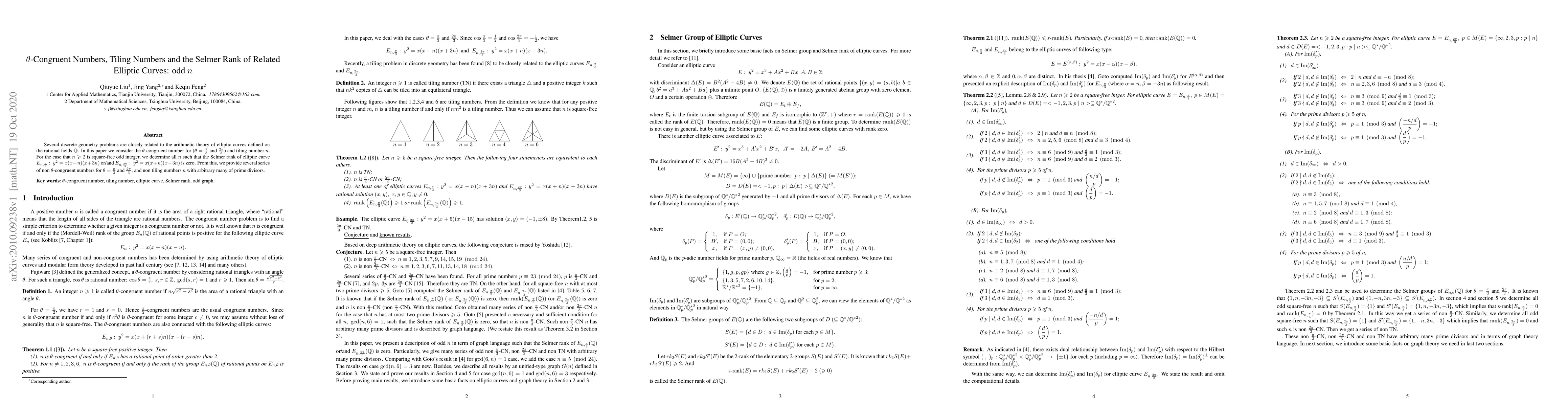 This paper investigates the relationship between $\theta$-congruent numbers, tiling numbers, and the Selmer rank of specific elliptic curves for square-free odd integers $n$. It determines all such $n$ for which the Selmer rank of the elliptic curves is zero, providing non $\theta$-congruent and non tiling numbers with many prime divisors.