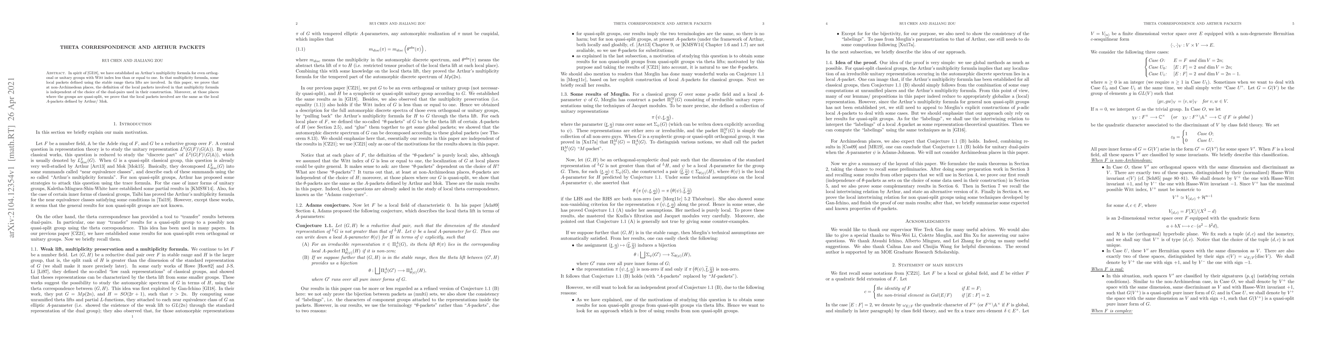 This research establishes a crucial connection between theta lifts and Arthur packets, providing new insights into the multiplicity formula for even orthogonal or unitary groups with Witt index less than or equal to one.