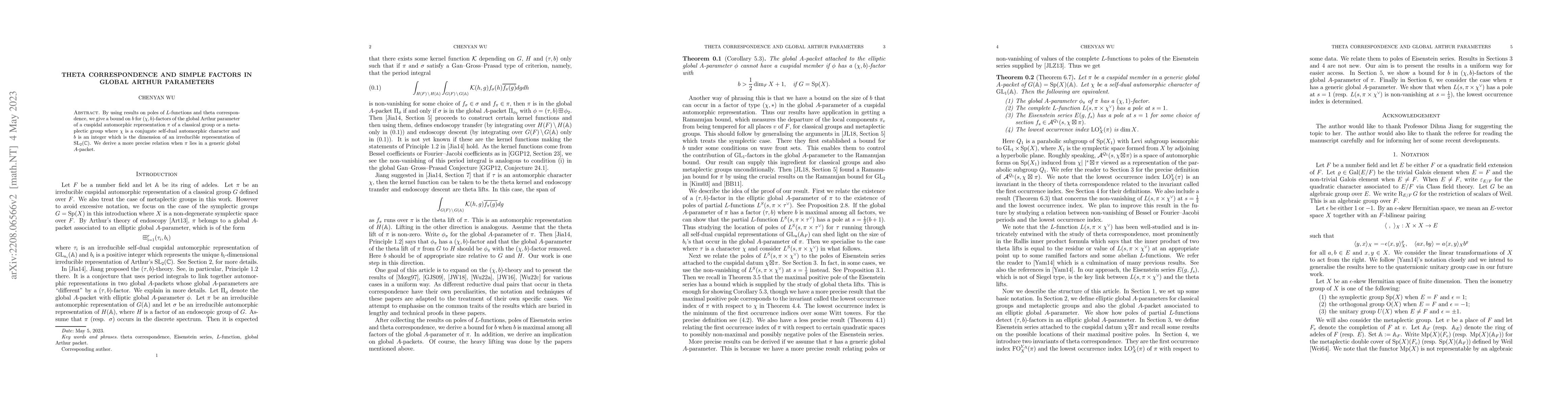 Summary: This paper establishes a bound for $(\chi,b)$-factors in the global Arthur parameter of cuspidal automorphic representations using results on $L$-functions and theta correspondence. It provides a refined relation when the representation is within a generic global $A$-packet.