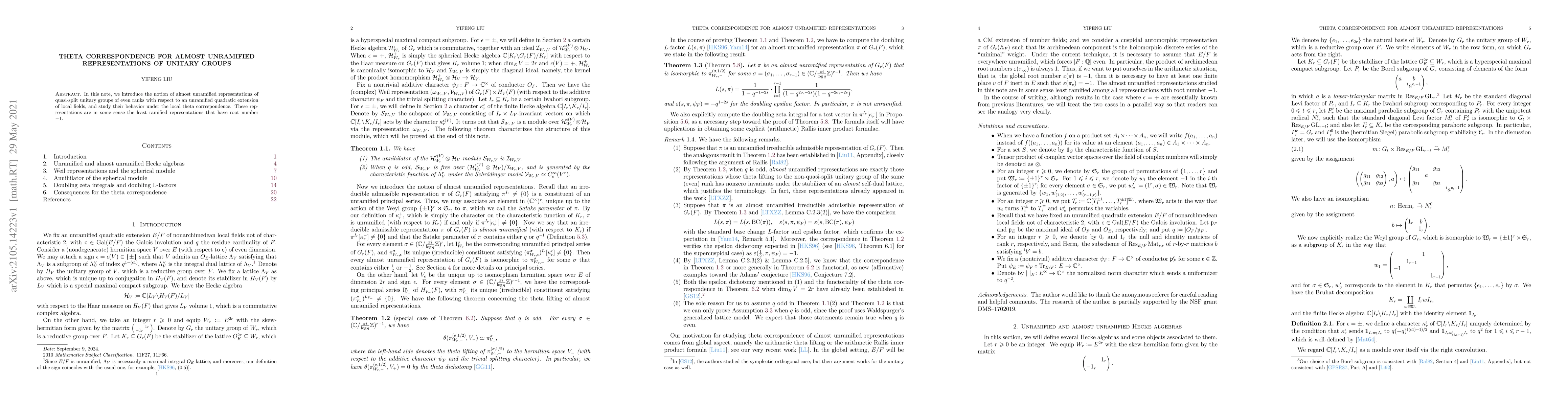Two-line summary: This paper introduces the concept of almost unramified representations of quasi-split unitary groups and examines their behavior under the local theta correspondence, highlighting their minimal ramification while maintaining a root number of $-1$. The study focuses on their significance within the framework of local theta correspondence.