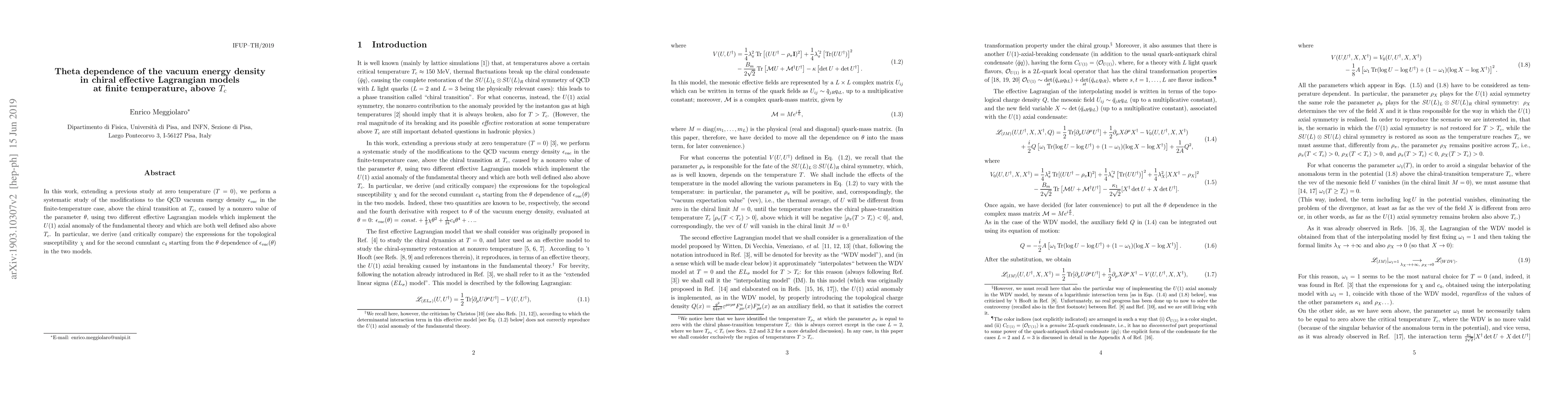 In this work, extending a previous study at zero temperature ($T=0$), we perform a systematic study of the modifications to the QCD vacuum energy density $\epsilon_{vac}$ in the finite-temperature case, above the chiral transition at $T_c$, caused by a nonzero value of the parameter $\theta$, using two different effective Lagrangian models which implement the $U(1)$ axial anomaly of the fundamental theory and which are both well defined also above $T_c$. In particular, we derive (and critically compare) the expressions for the topological susceptibility $\chi$ and for the second cumulant $c_4$ starting from the $\theta$ dependence of $\epsilon_{vac}(\theta)$ in the two models.