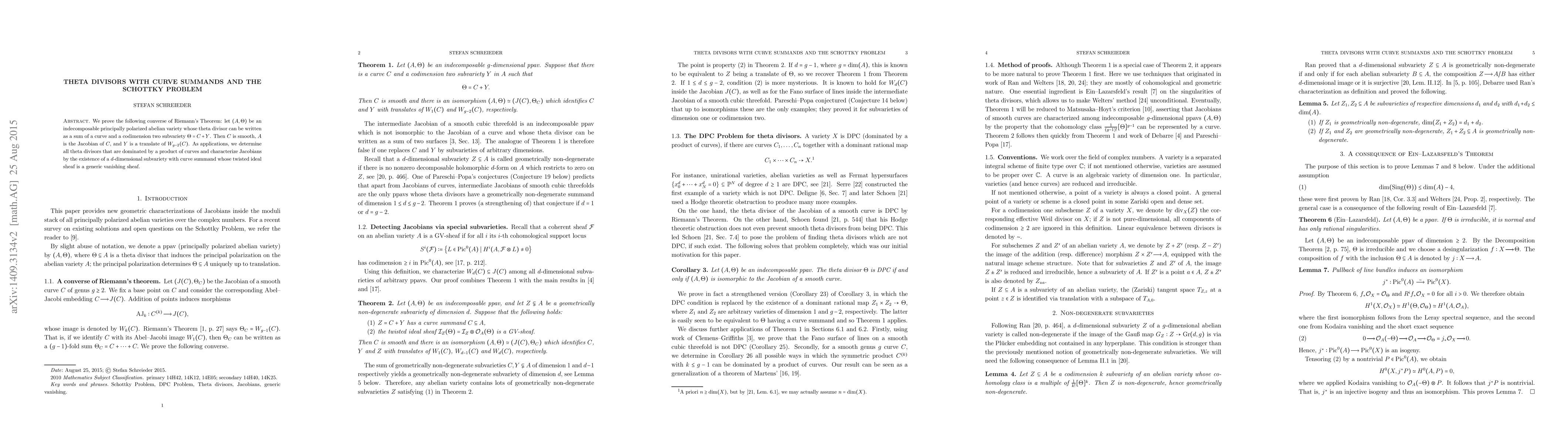 This paper proves a converse to Riemann's Theorem for indecomposable principally polarized abelian varieties, showing that if a theta divisor is a sum of a curve and a codimension two subvariety, then the curve is smooth, the variety is the Jacobian of the curve, and the subvariety is a translate of a certain subvariety. It also characterizes theta divisors dominated by products of curves and identifies Jacobians via d-dimensional subvarieties with curve summands.