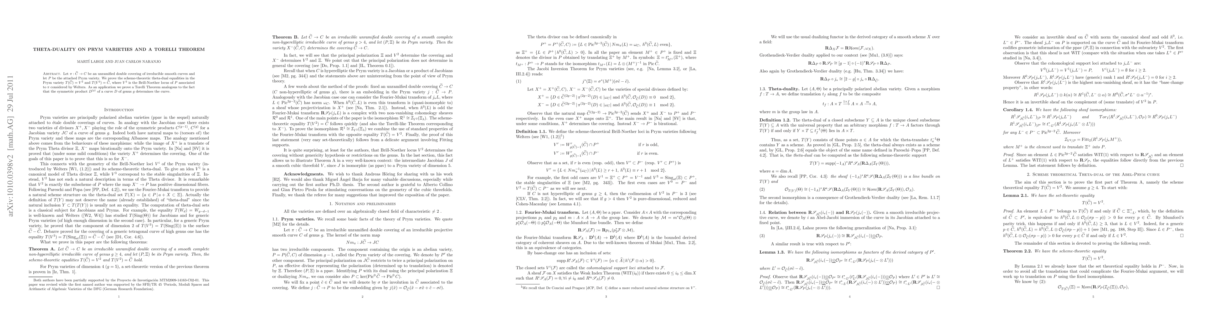 Researchers prove a Torelli Theorem for Prym varieties, showing that their theta-dual is equivalent to the original curve, with implications for understanding the geometry of curves.