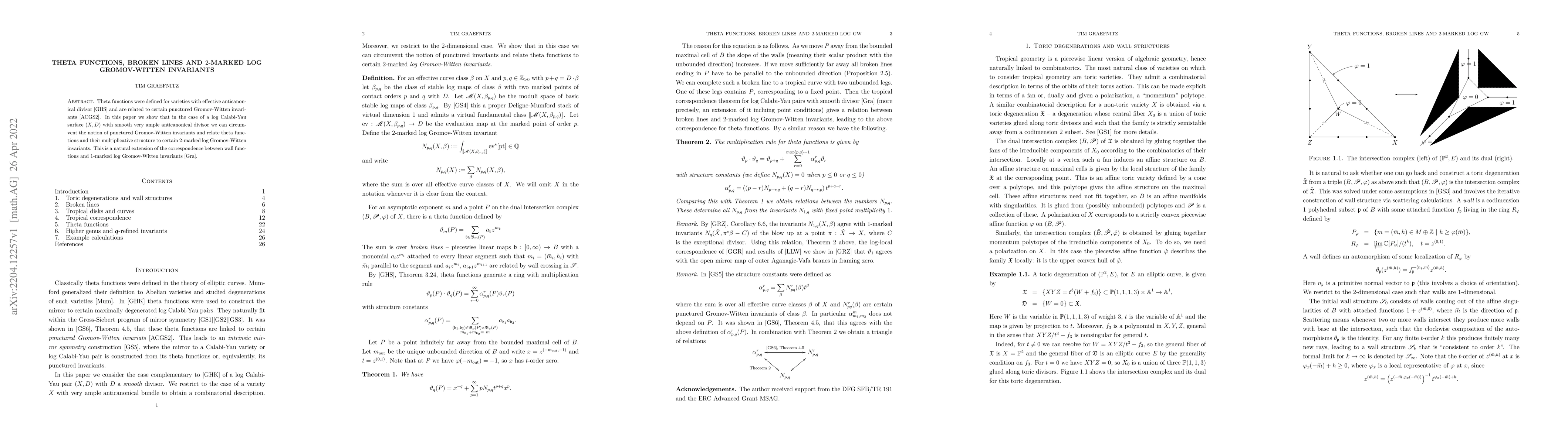 Summary: This paper establishes a direct connection between theta functions on log Calabi-Yau surfaces and 2-marked log Gromov-Witten invariants, bypassing the need for punctured Gromov-Witten invariants, thus extending the existing correspondence between wall functions and 1-marked invariants.