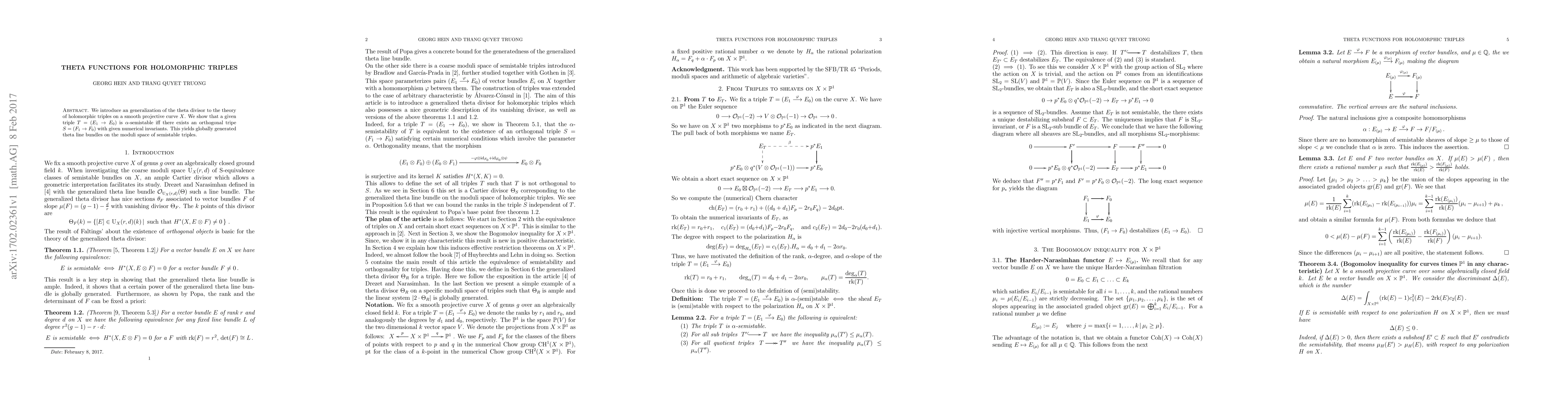 Researchers introduce a generalization of theta divisor to holomorphic triples on a smooth projective curve, linking stability to the existence of an orthogonal triple with given numerical invariants.