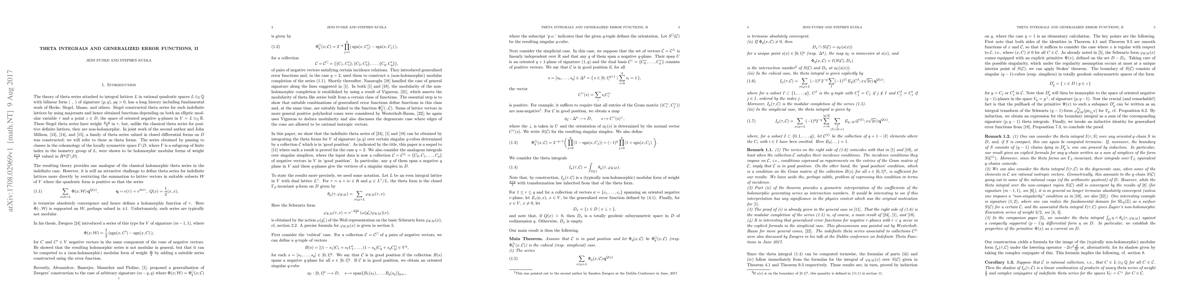 Theta series for indefinite quadratic lattices were introduced by Zwegers, for signature (m-1,1), Alexandrov, Banerjee, Manschot and Pioline, for signature (m-2,2), and Nazaroglu, for signature (m-q,q). These series are modular modular completions, defined by means of generalized error functions, of certain non-modular holomorphic generating series associated to lattice vectors in positive cones. We show that these modular forms arise as integrals of the theta forms, defined in work of Millson and the second author, over certain singular q-cubes. We also give an explicit formula for the integrals of such forms over singular q-simplices. The sign function occurring in the holomorphic generating series arises as in intersection number of the singular q-cube or q-simplex with a totally geodesic subsymmetric space of codimension q. The cubical case for q=2 was treated in [11].
