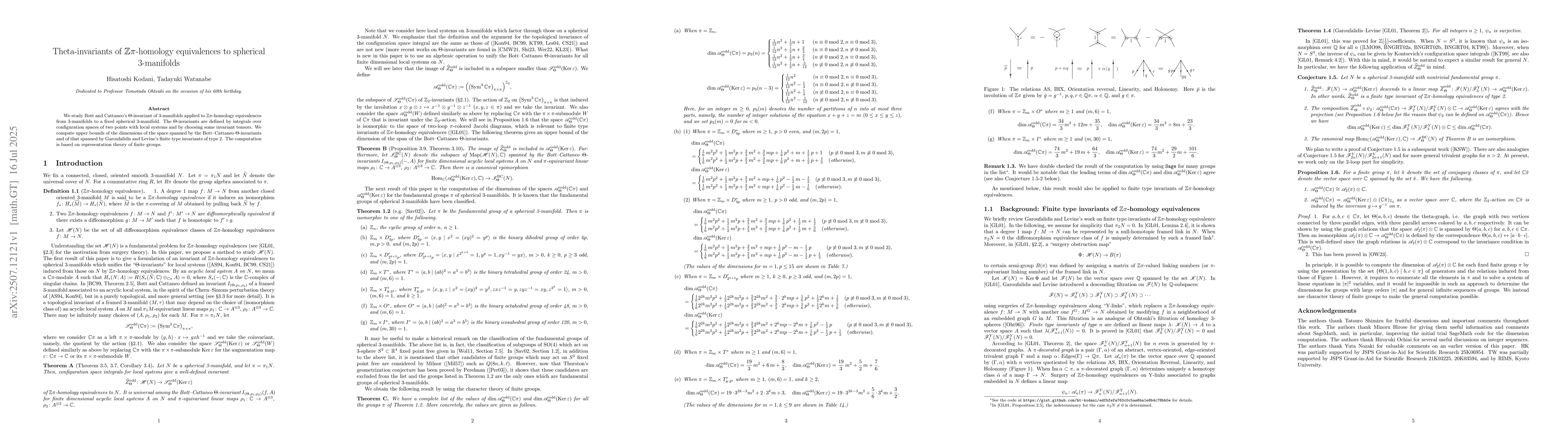 We study Bott and Cattaneo's $\Theta$-invariant of 3-manifolds applied to $\mathbb{Z}\pi$-homology equivalences from 3-manifolds to a fixed spherical 3-manifold. The $\Theta$-invariants are defined by integrals over configuration spaces of two points with local systems and by choosing some invariant tensors. We compute upper bounds of the dimensions of the space spanned by the Bott--Cattaneo $\Theta$-invariants and of that spanned by Garoufalidis and Levine's finite type invariants of type 2. The computation is based on representation theory of finite groups.
